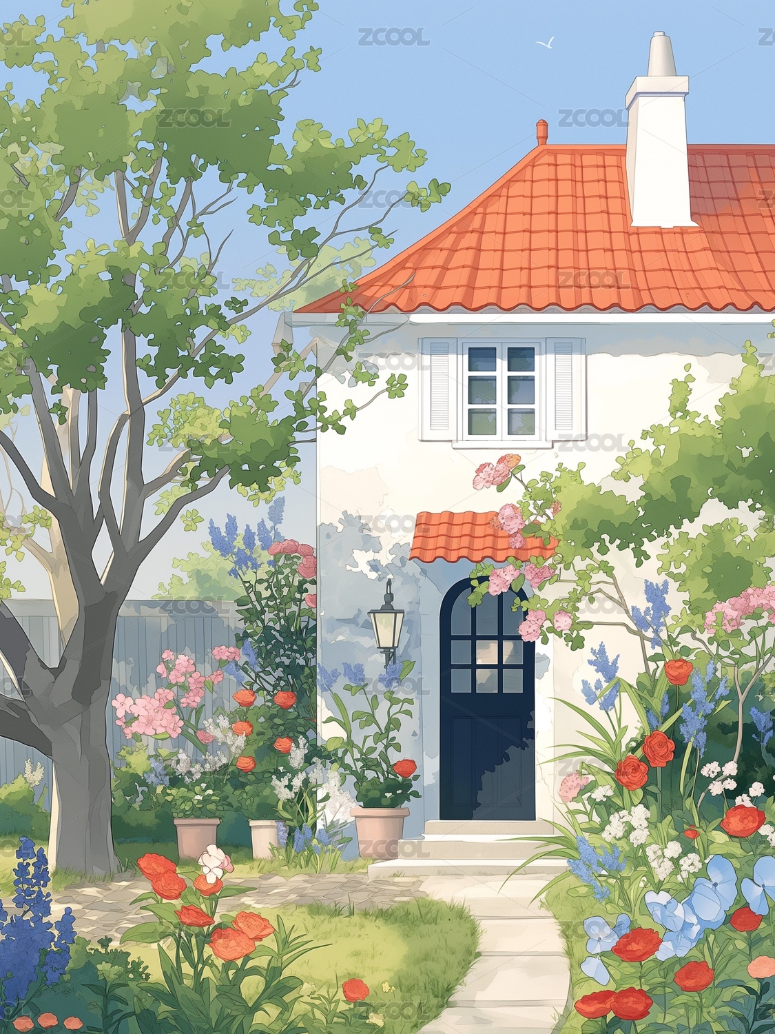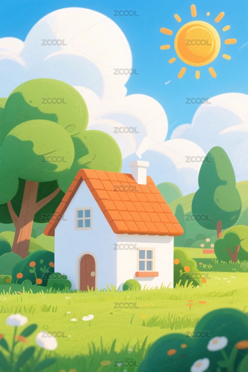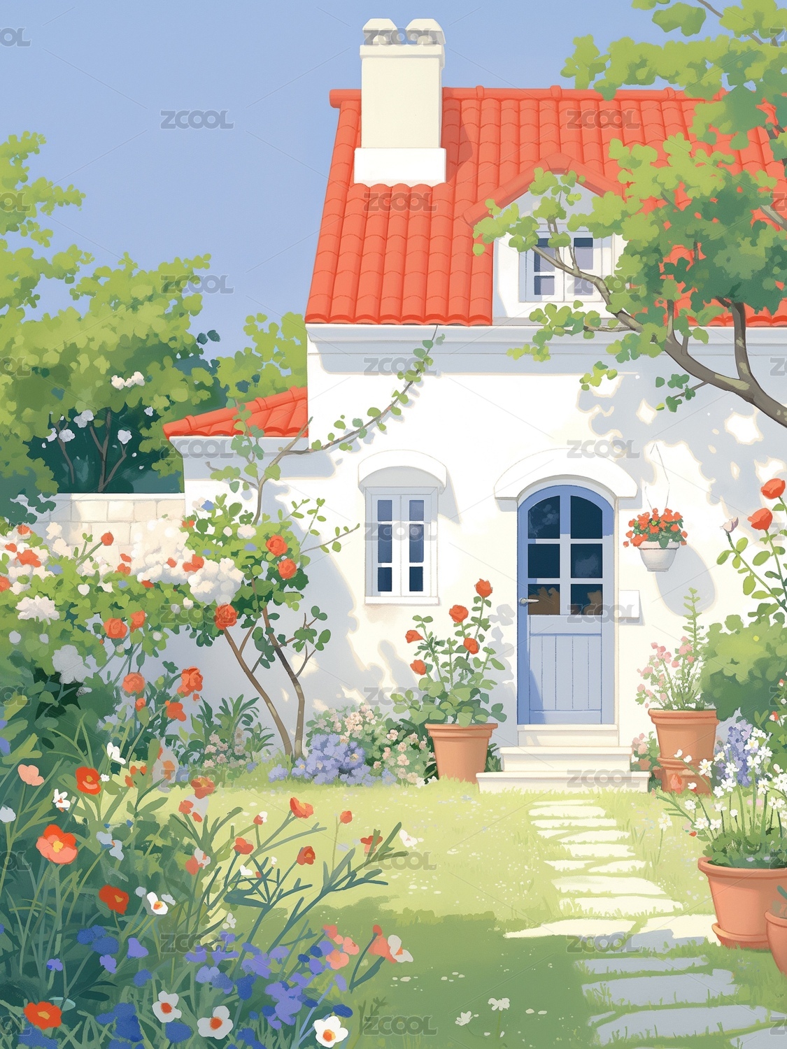 萌宠,花园,动物,可爱,治愈,卡通,插画,春日,阳光,温暖