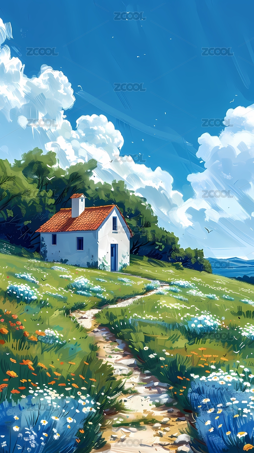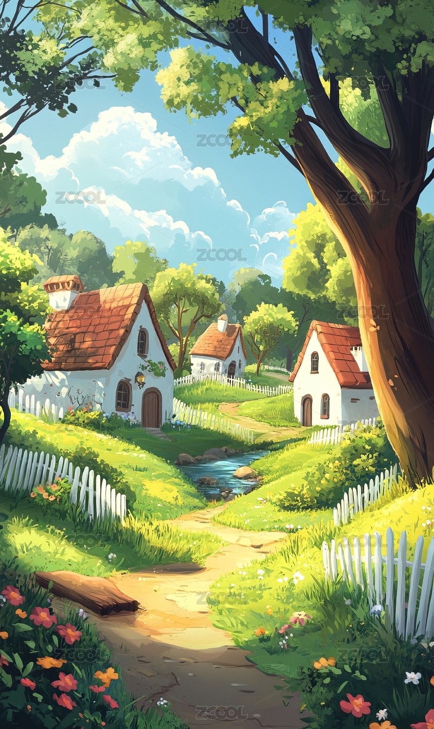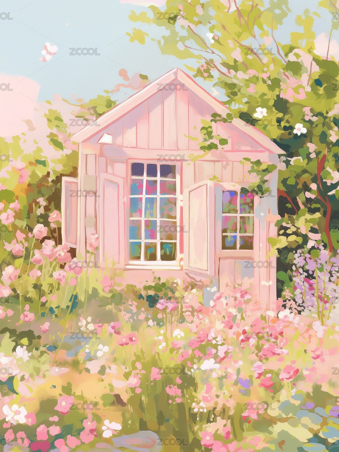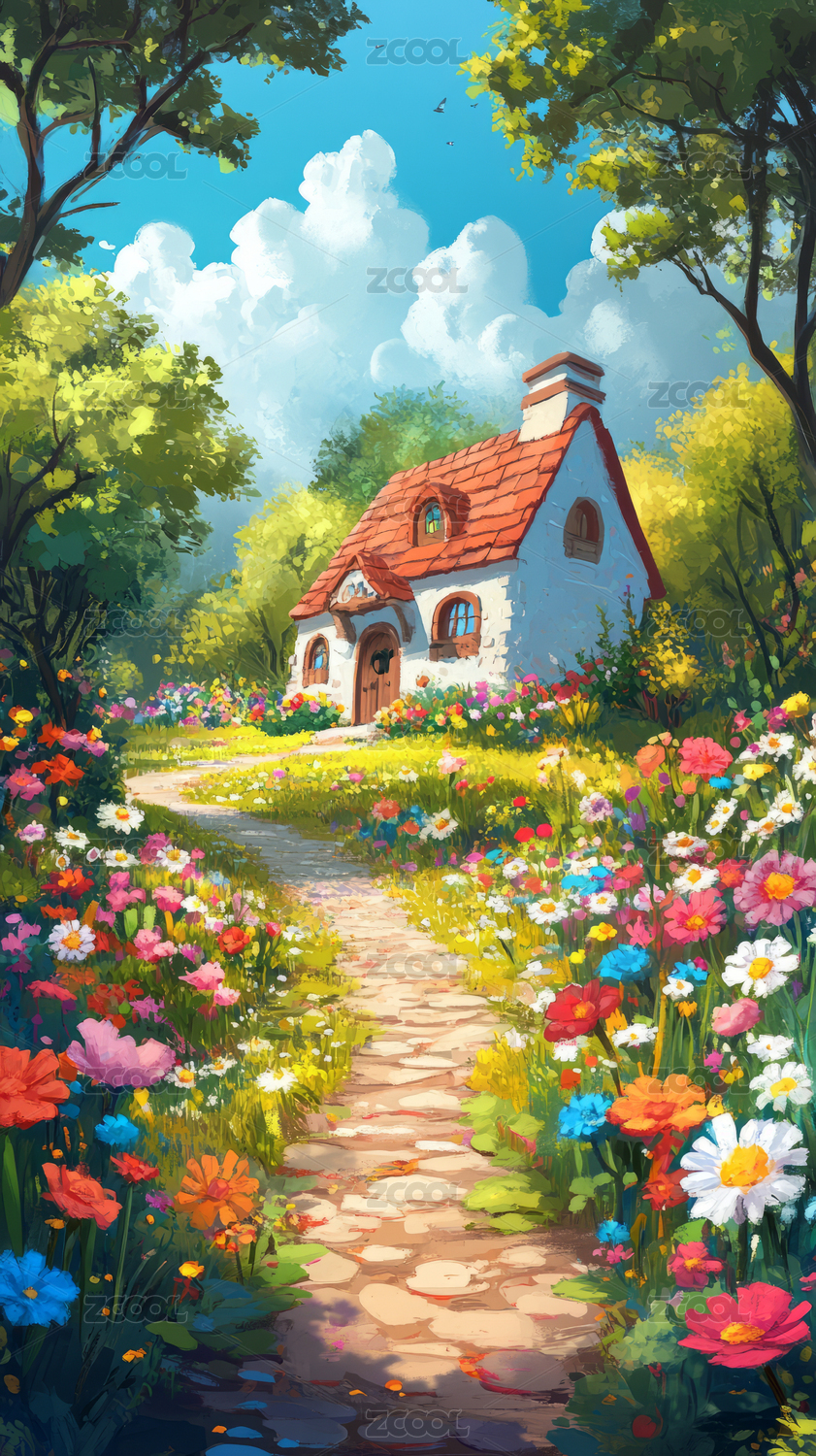 萌宠,花园,动物,可爱,治愈,卡通,插画,春日,阳光,温暖