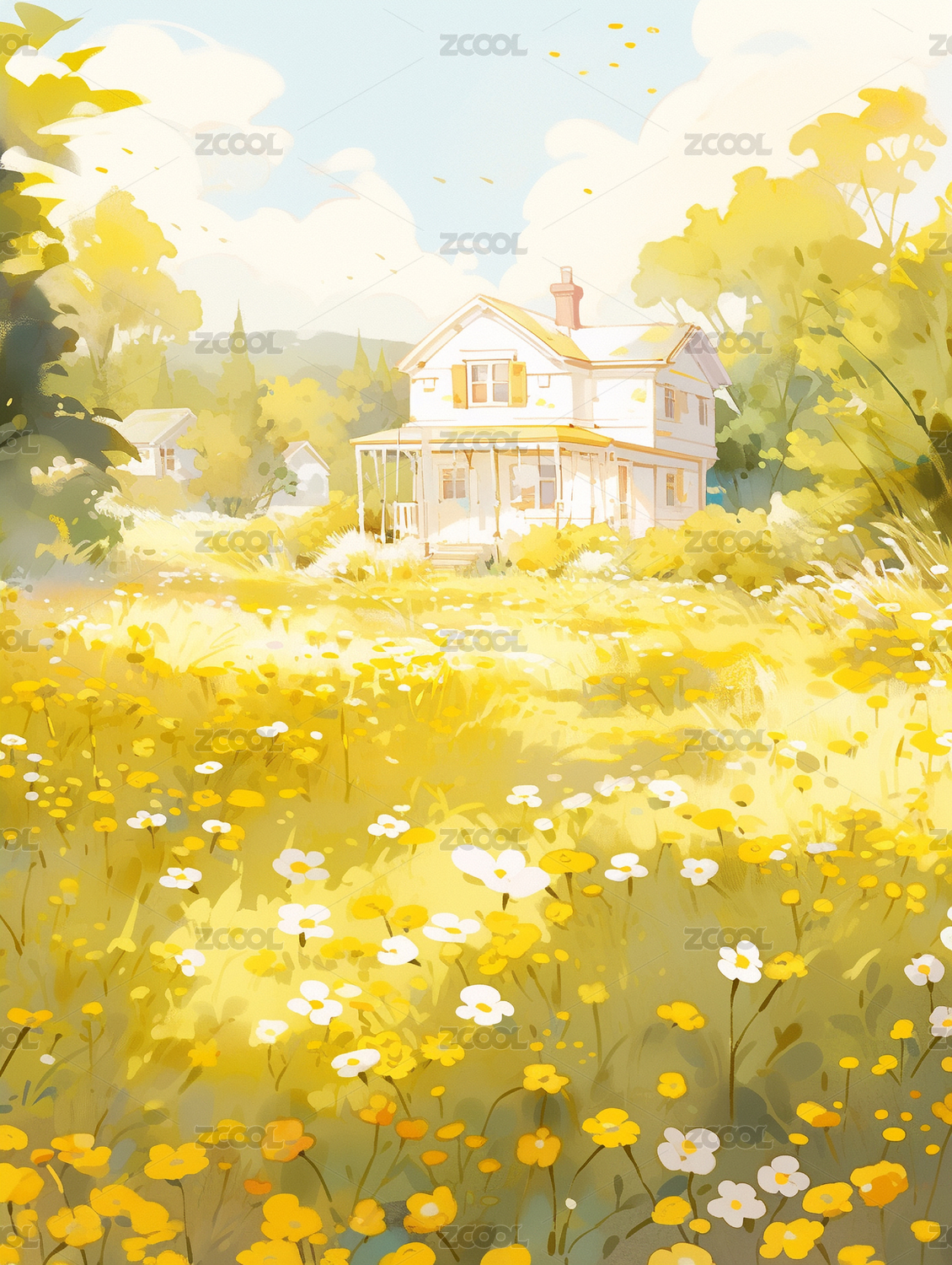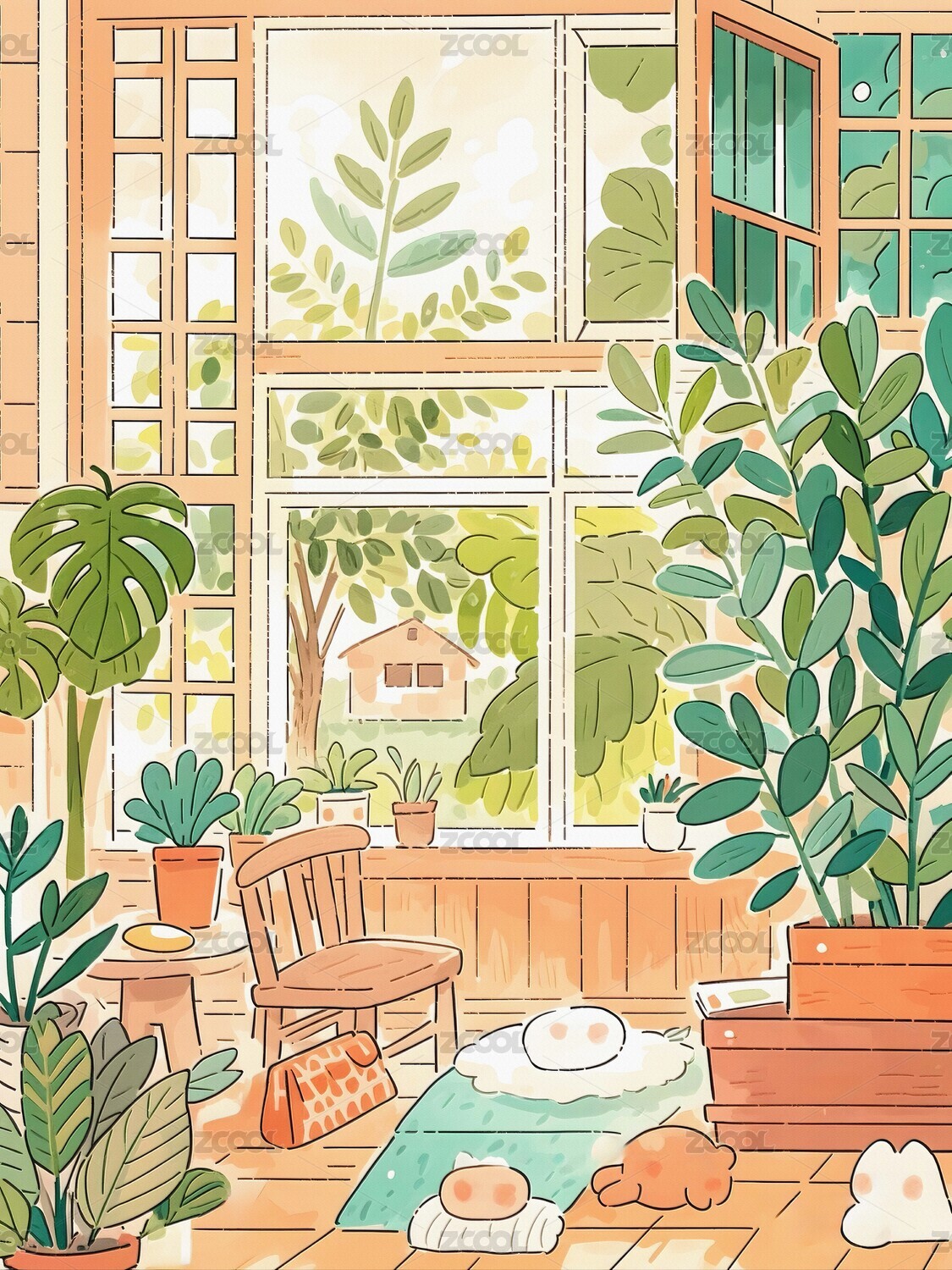 萌宠,花园,动物,可爱,治愈,卡通,插画,春日,阳光,温暖