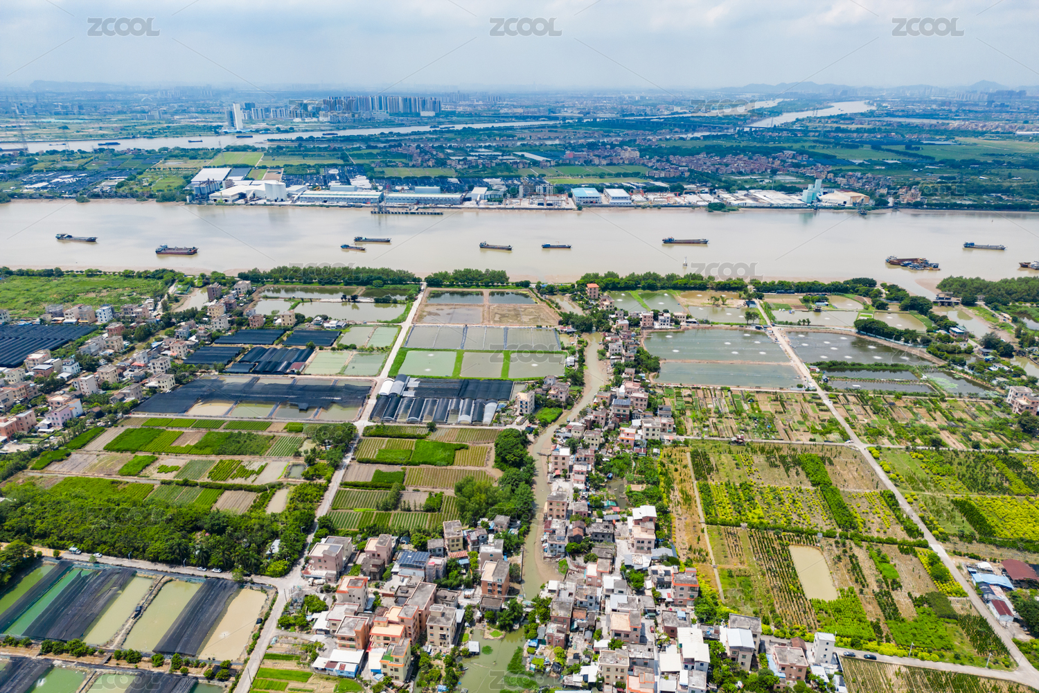 航拍湖南岳阳市湘阴县田野风光和湘江