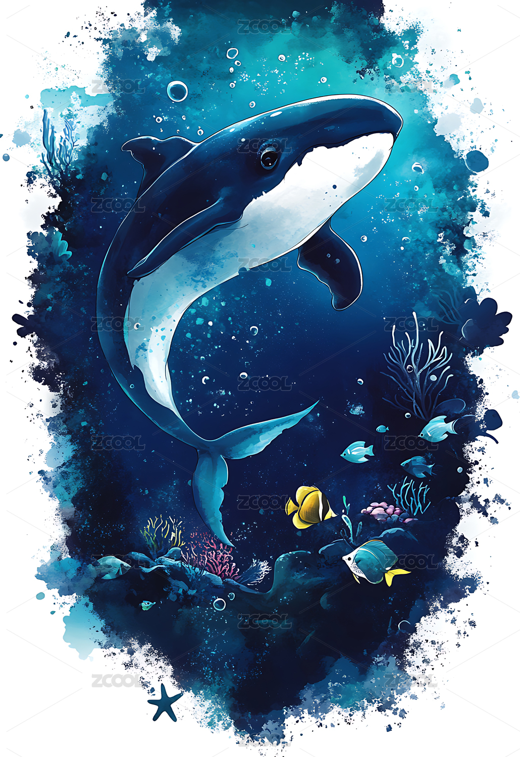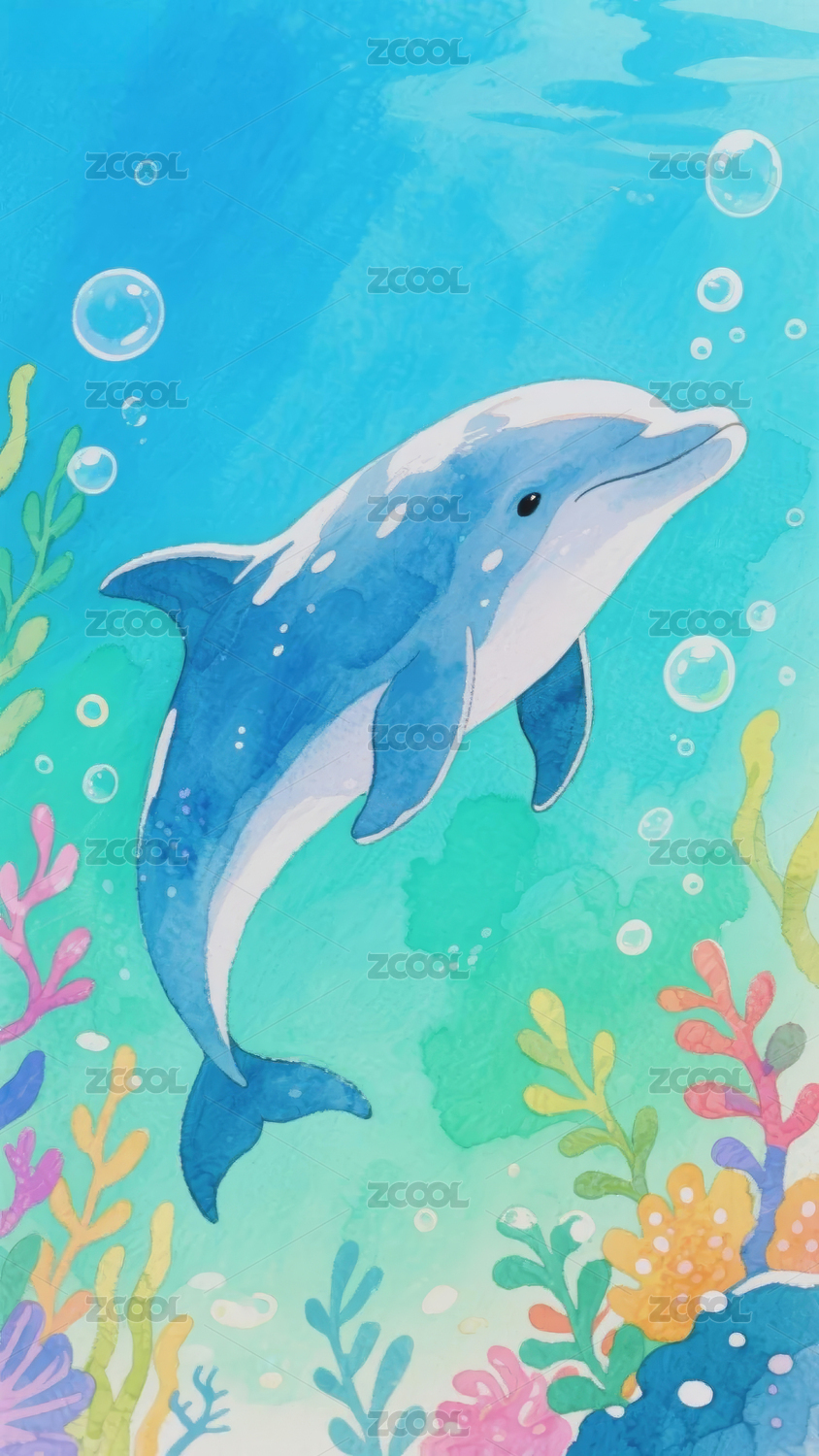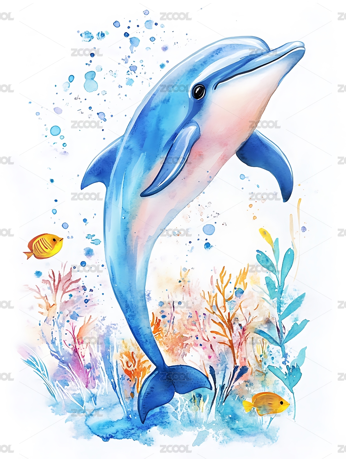 海豚,手绘,插画,海底,世界,水彩,插图,动物,艺术