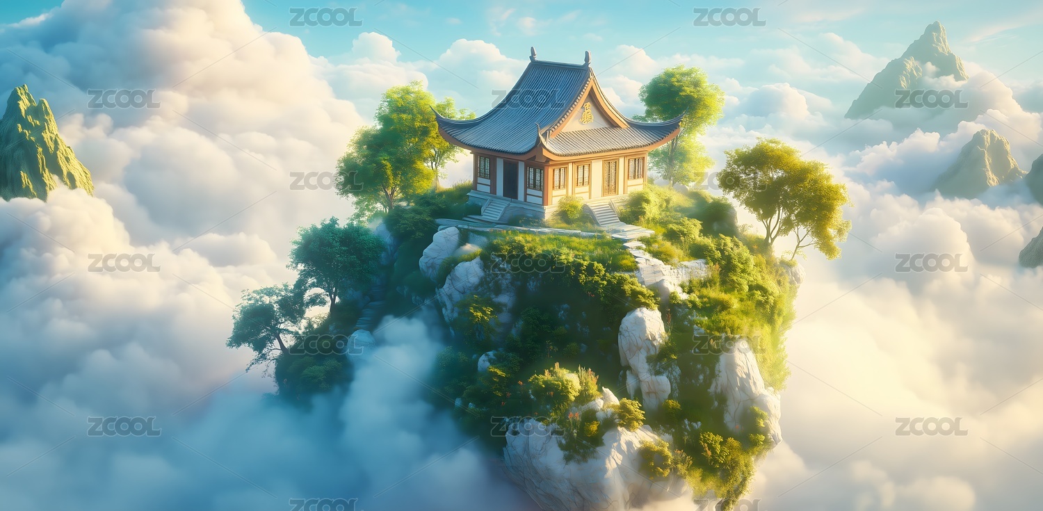 仙境中的寺庙与云雾