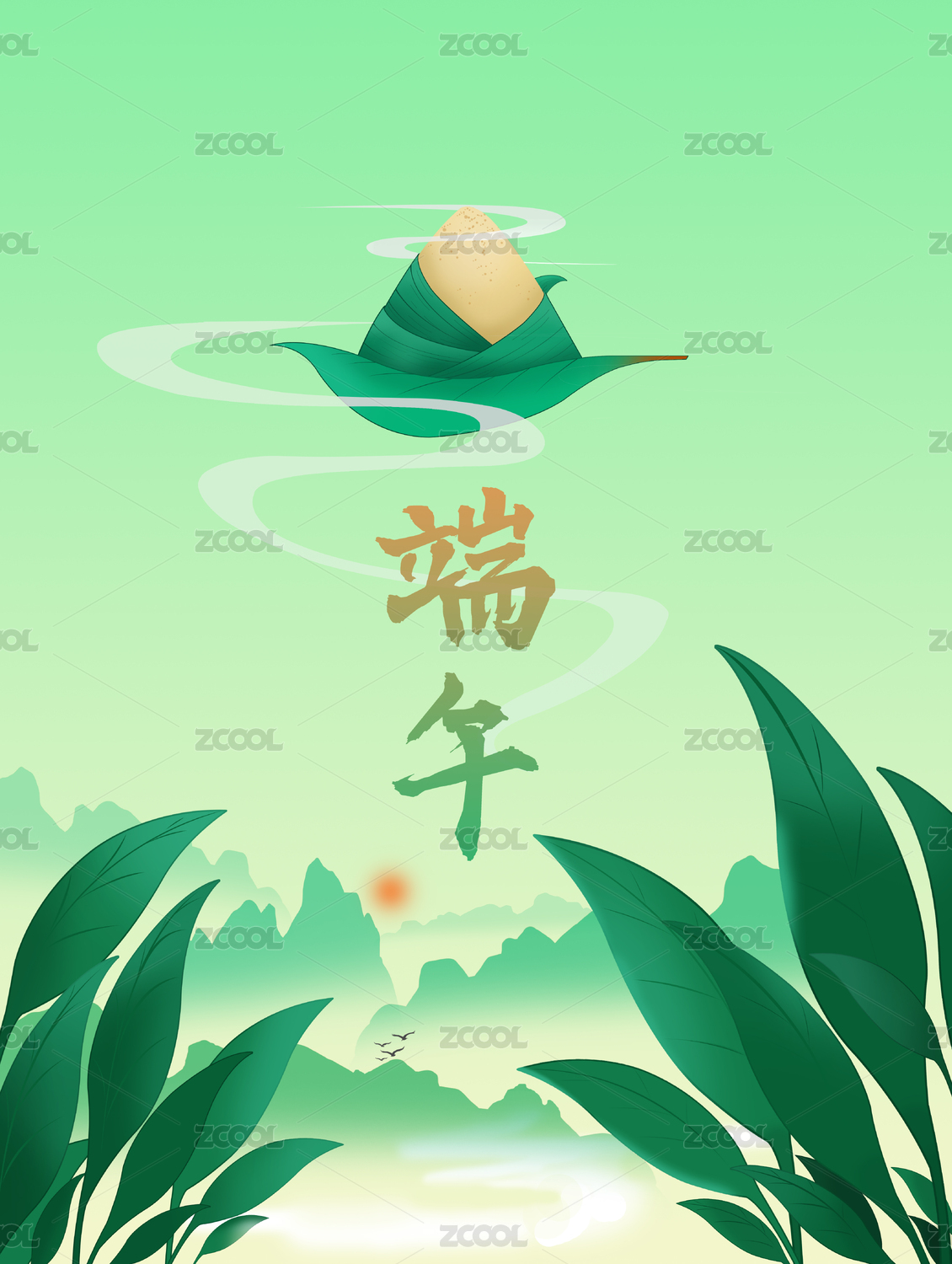 HECDBF2020,粽子,端午,端午节,绿色,粽子叶,肉粽,远山,矢量,节日