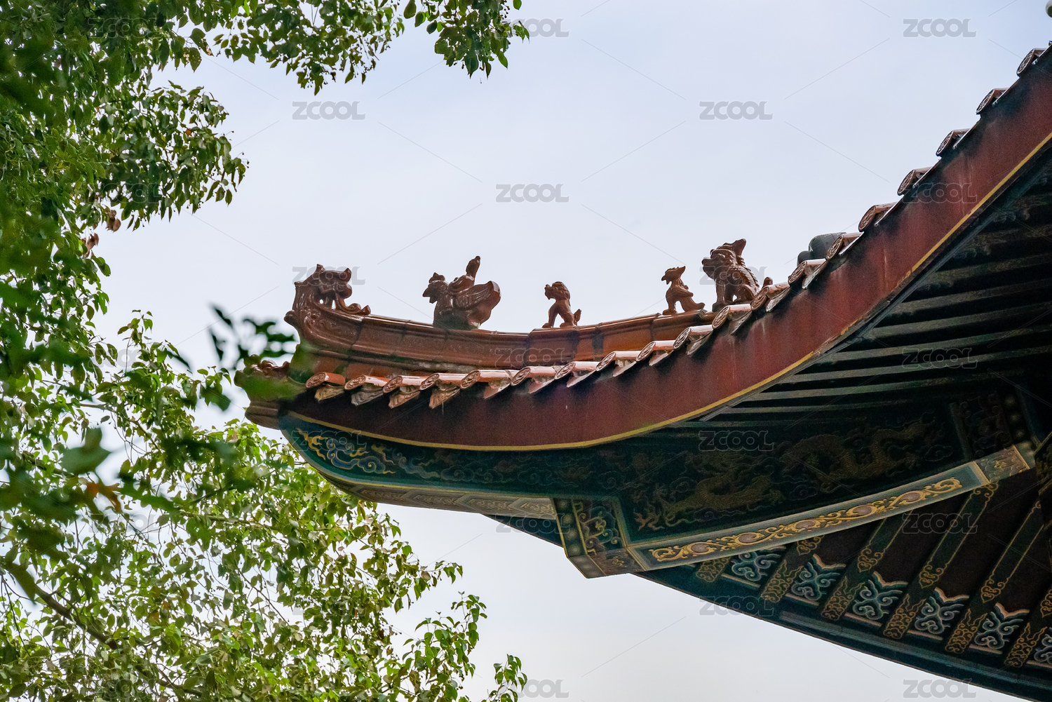 浙江舟山普陀山普济寺屋檐上的脊兽