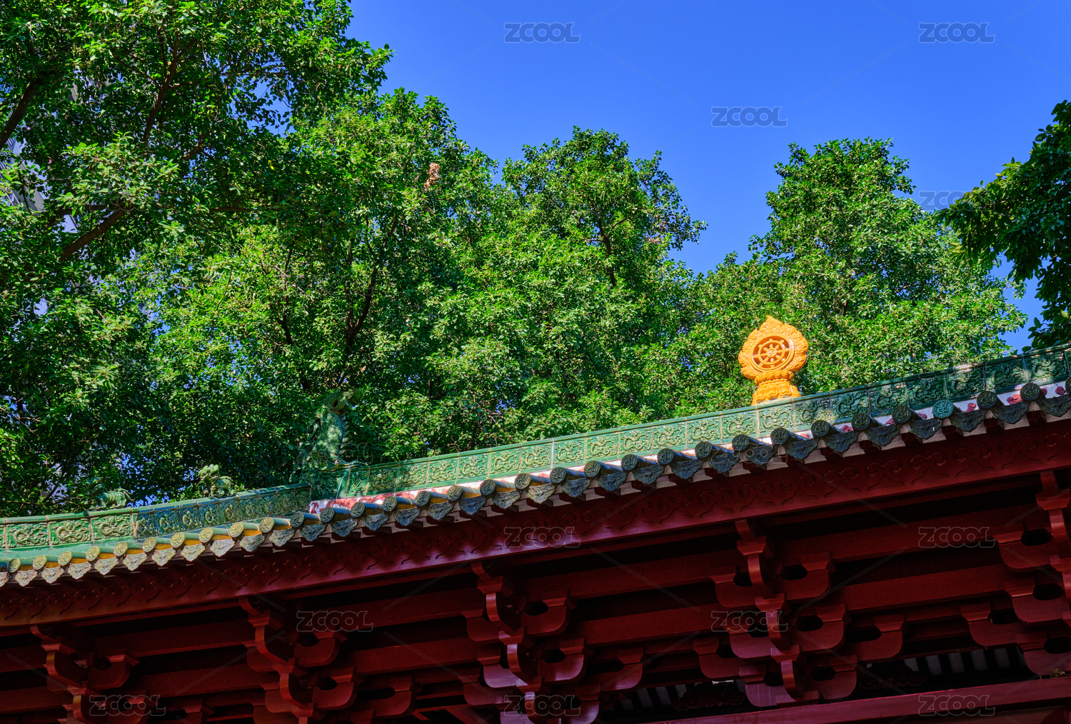 晴朗的蓝天下,四川乐山大佛景区建筑屋檐