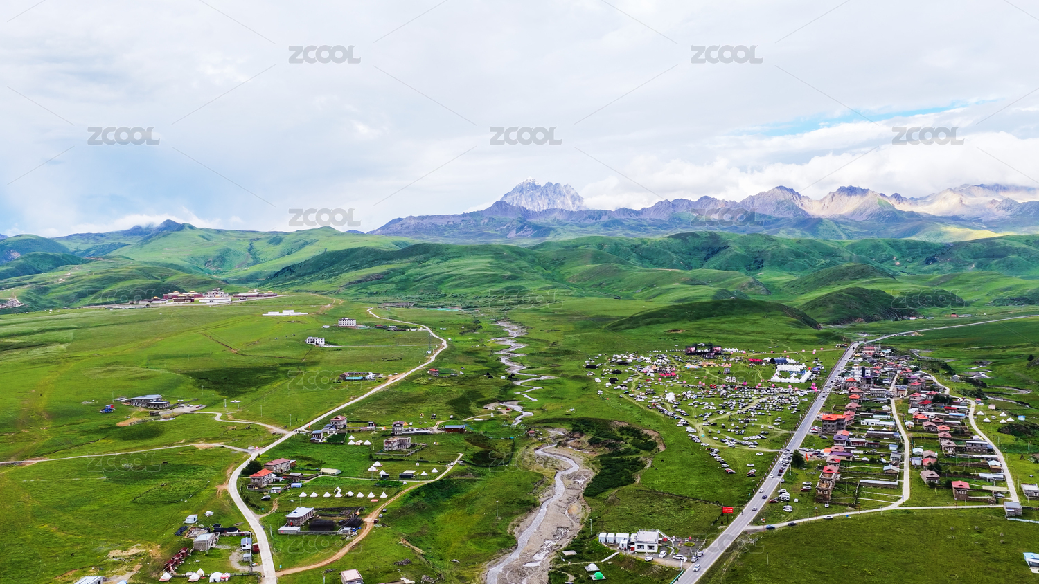 航拍四川阿坝毛尔盖大草原色地镇