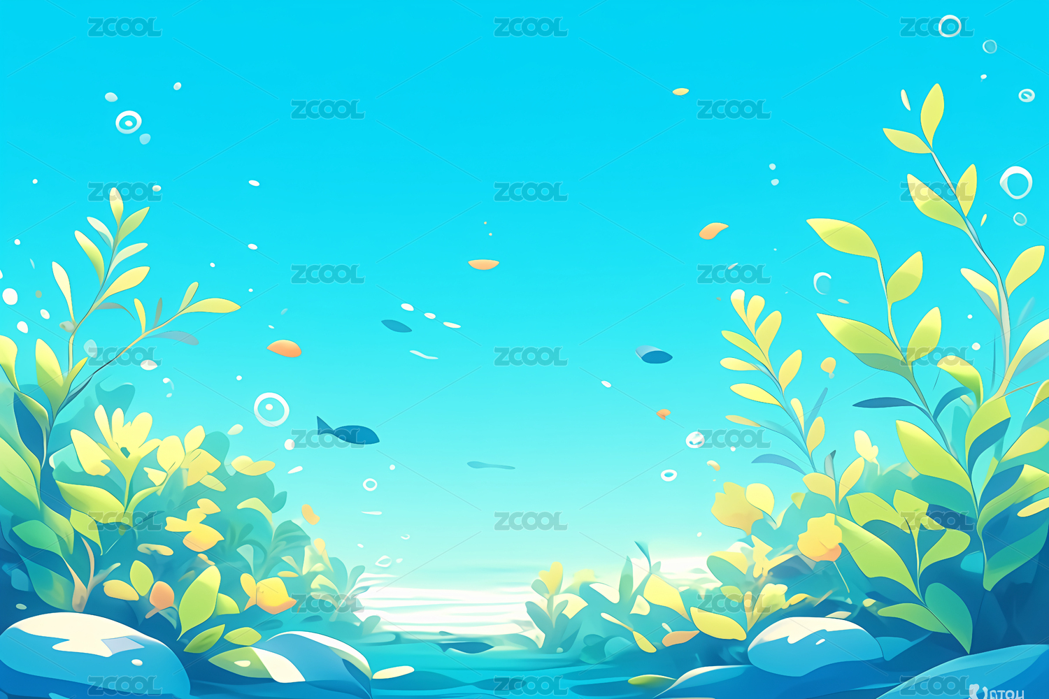 海洋,水底,卡通,清凉,夏季,夏天,背景,鱼,鱼类,海草