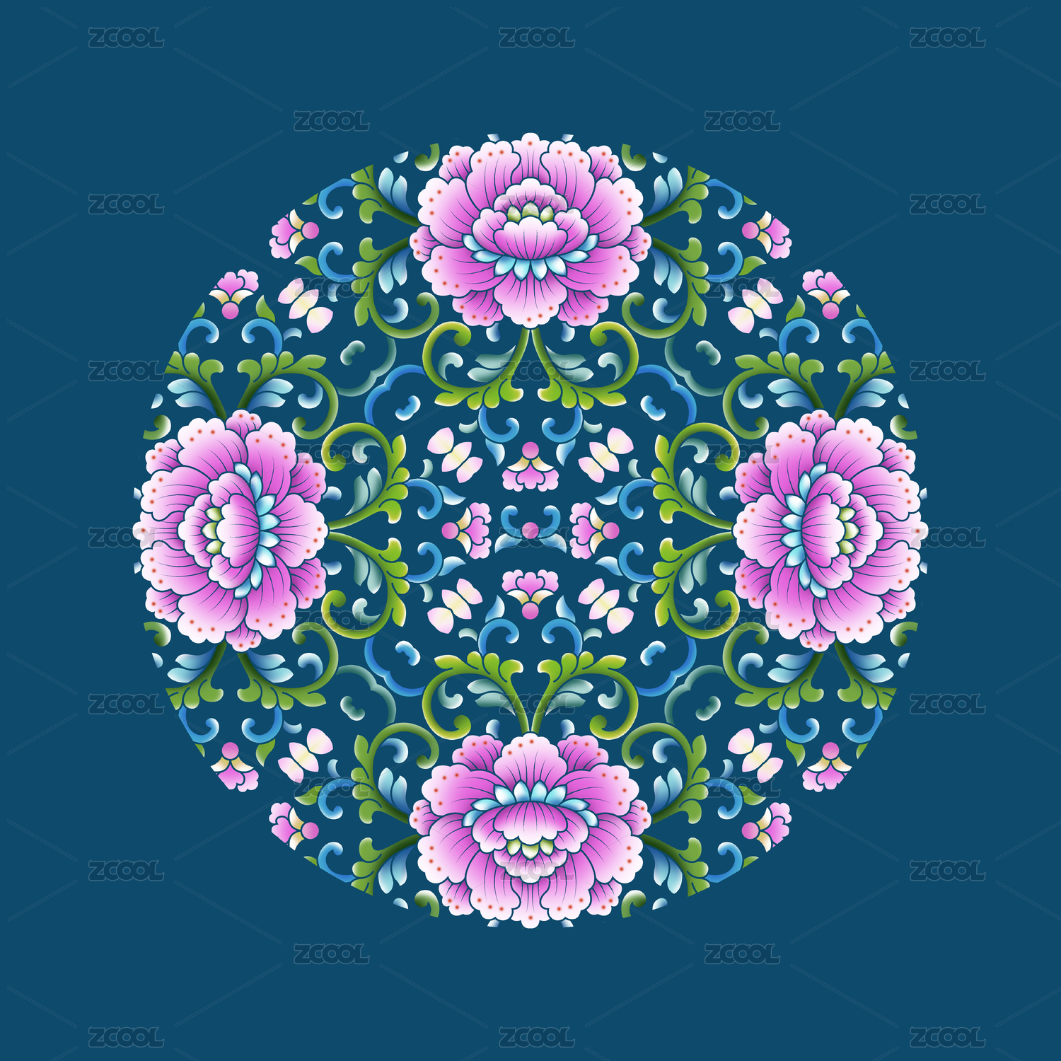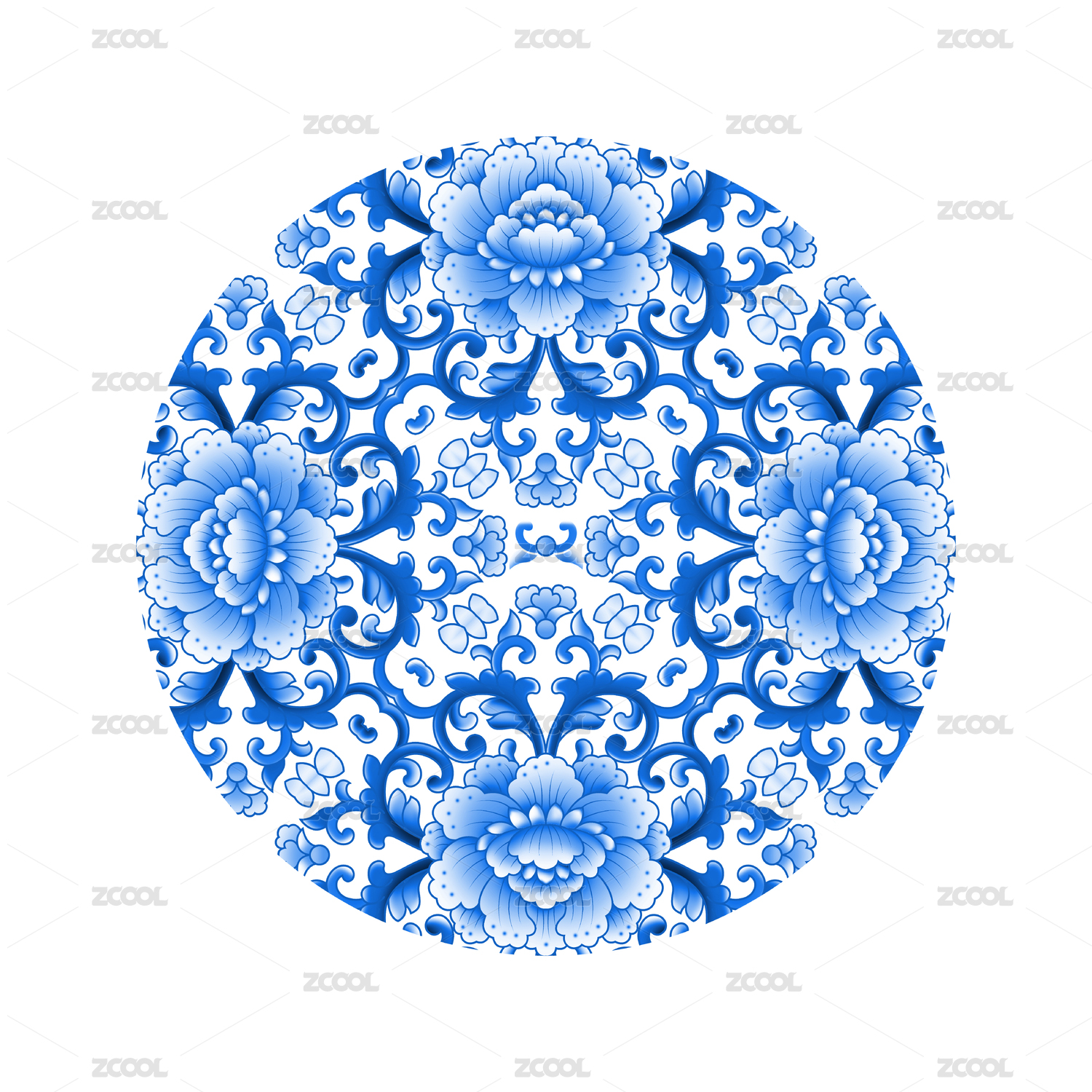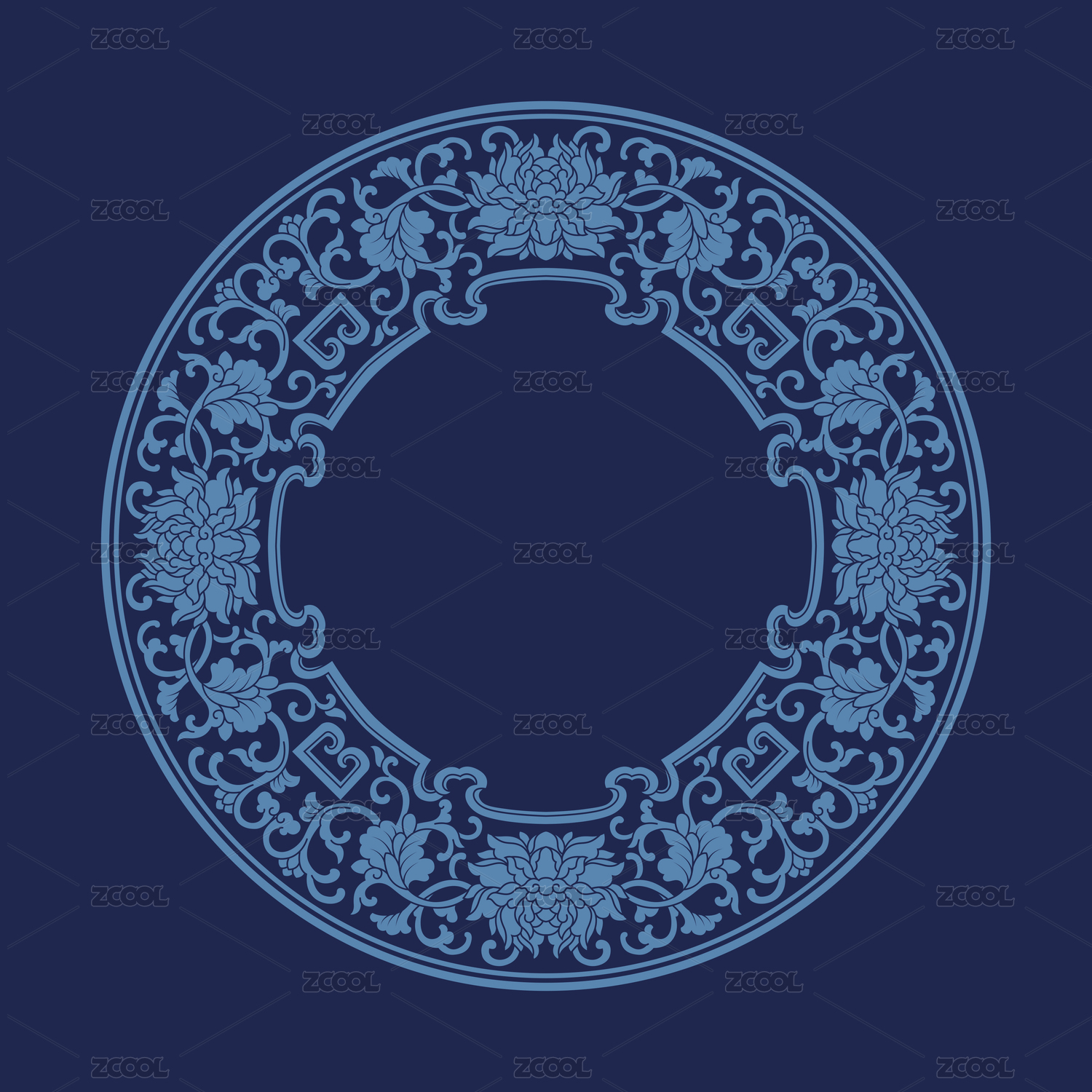 传统的蓝色圆形花纹纹样图案,蓝色背景