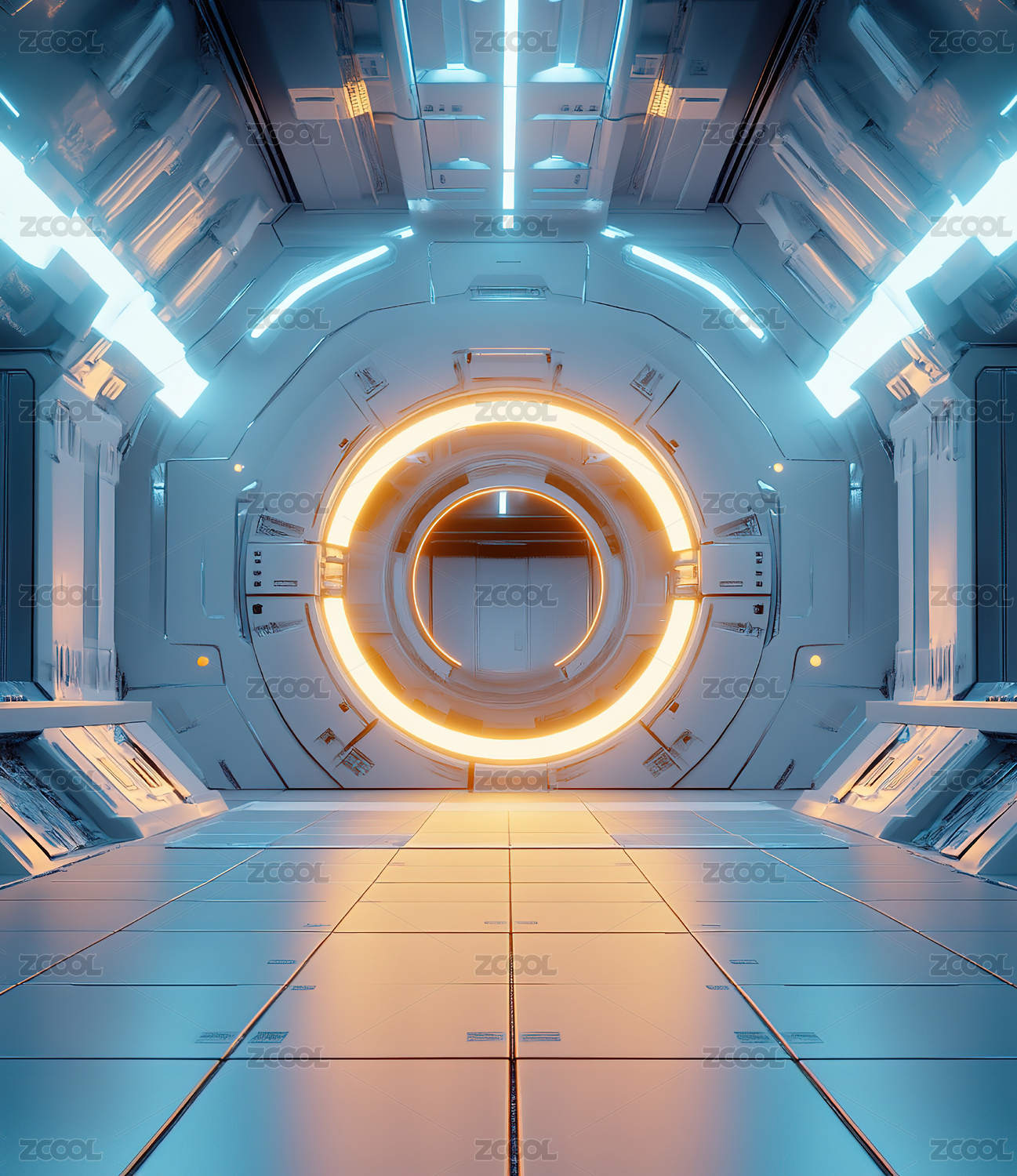 3D渲染的科幻延伸背景,空间站飞船的走廊