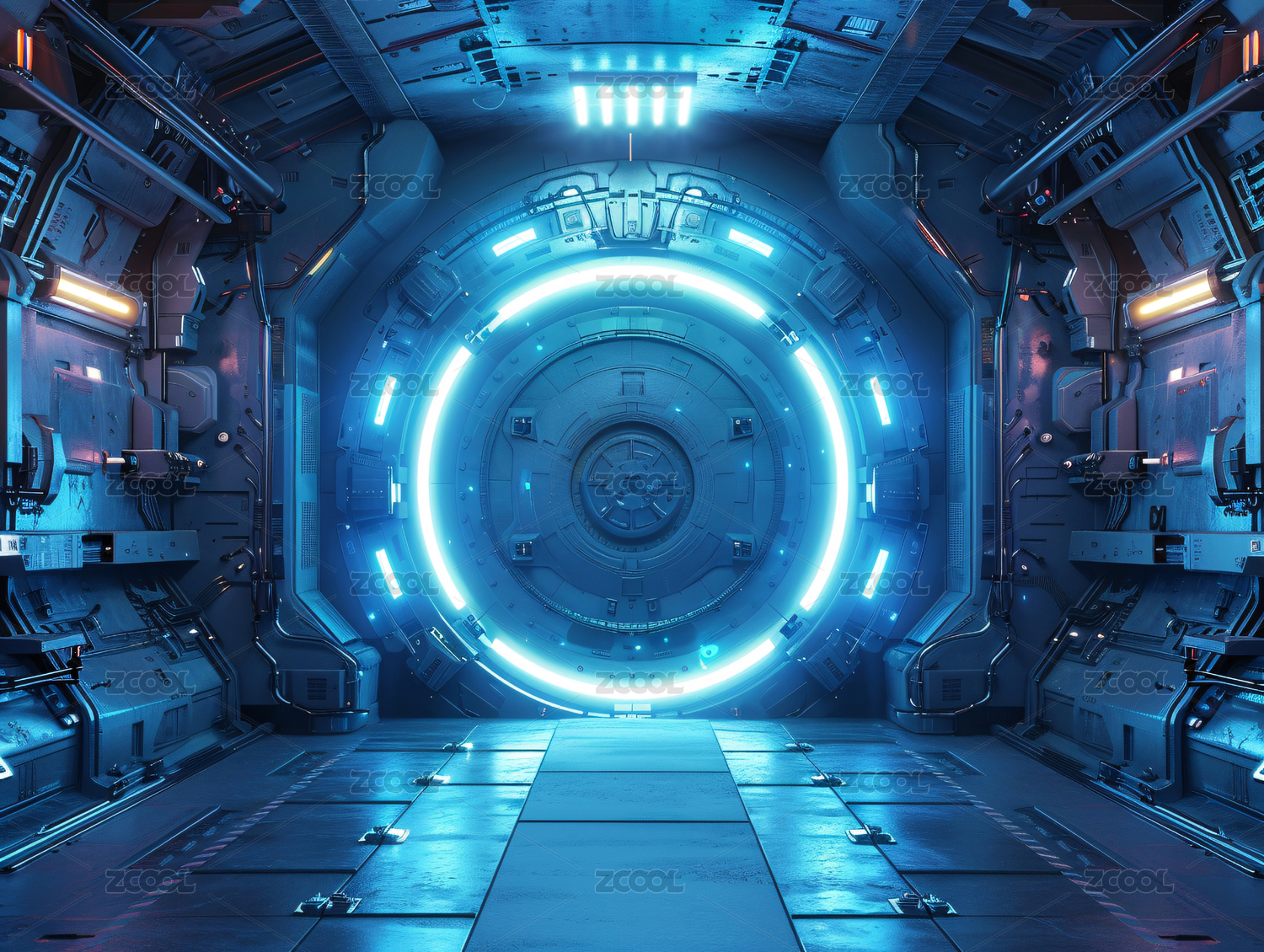 3D渲染科幻延伸空间站飞船走廊隧道背景