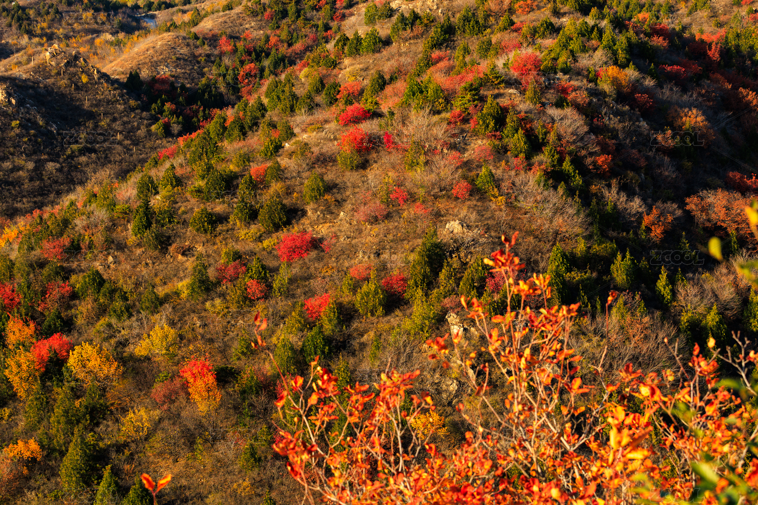 山坡上的彩色灌木林,中国山东省青州市天赐山
