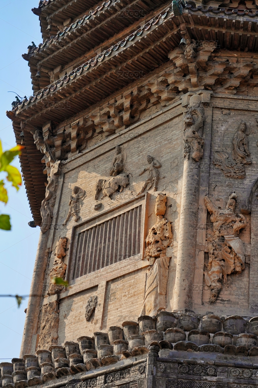 中国山西省平遥县古城民宅屋檐斗拱园林建筑