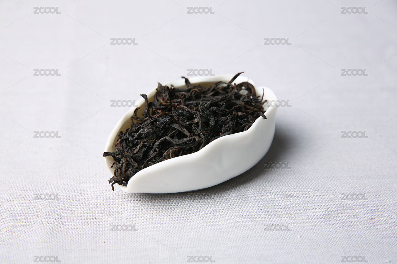 普洱茶生茶茶叶放在瓷盘里俯拍