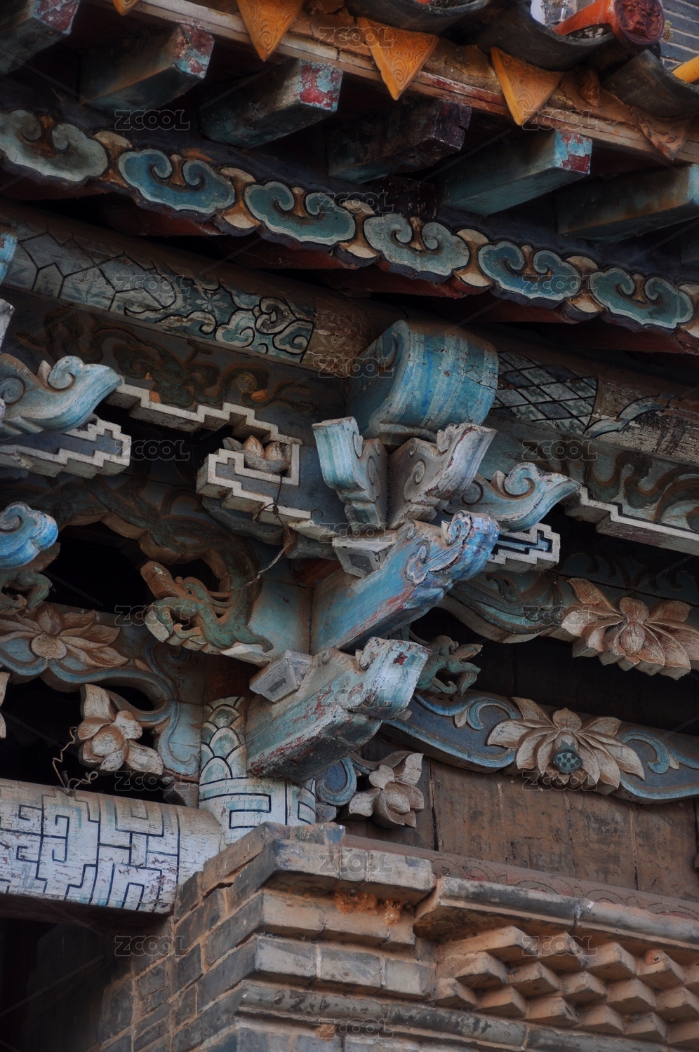 中国山西省平遥县古城阁楼屋顶装饰建筑