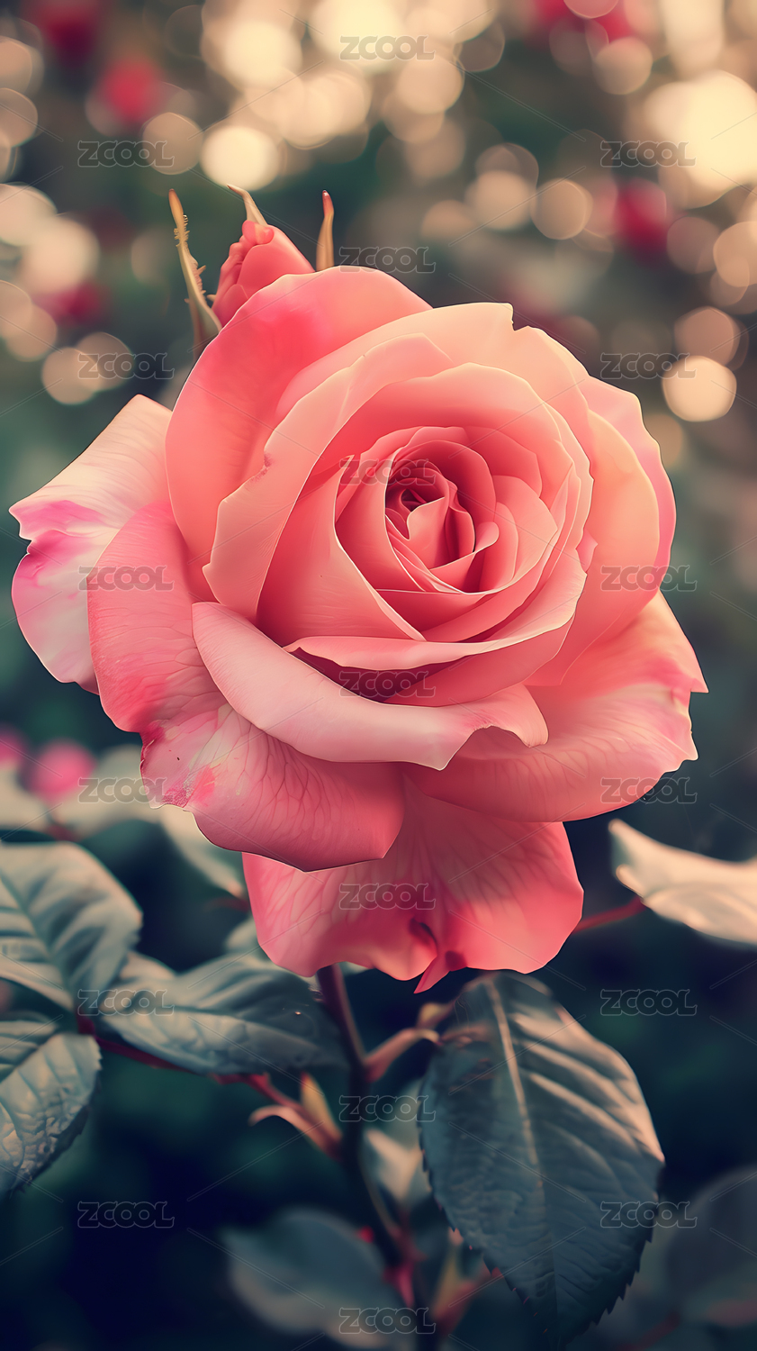 唯美光斑背景上粉色玫瑰花