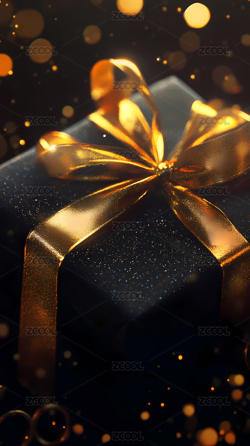 黑色礼盒与金色丝带,奢华闪耀的节日气氛