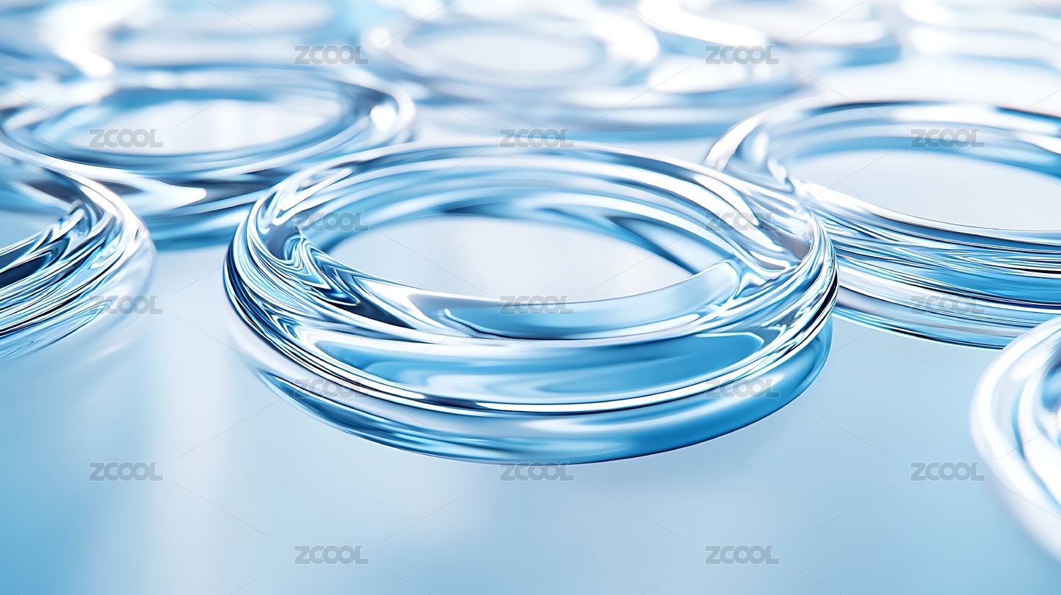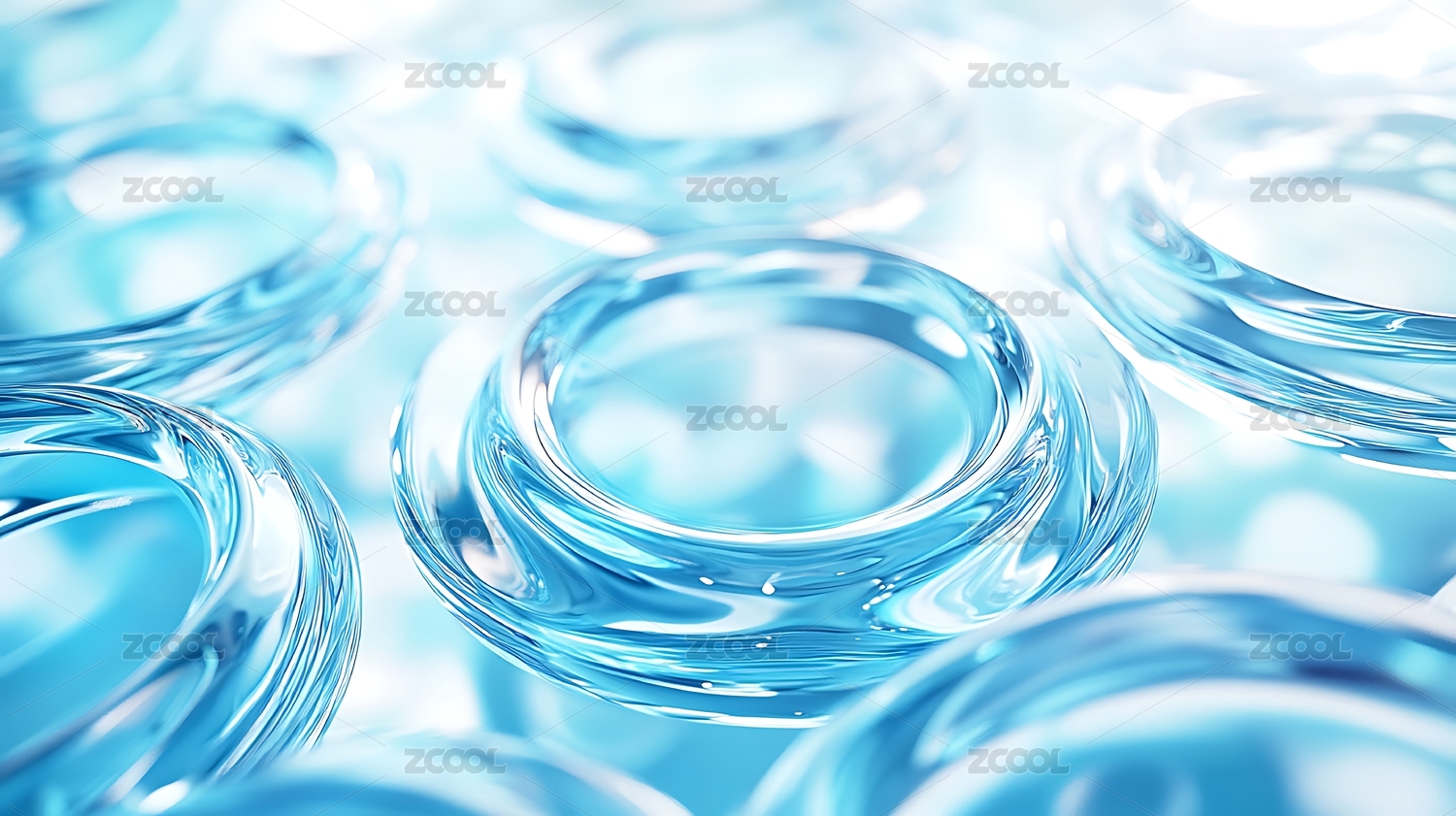 科幻感蓝色透明有机材料圆球气泡3D插画背