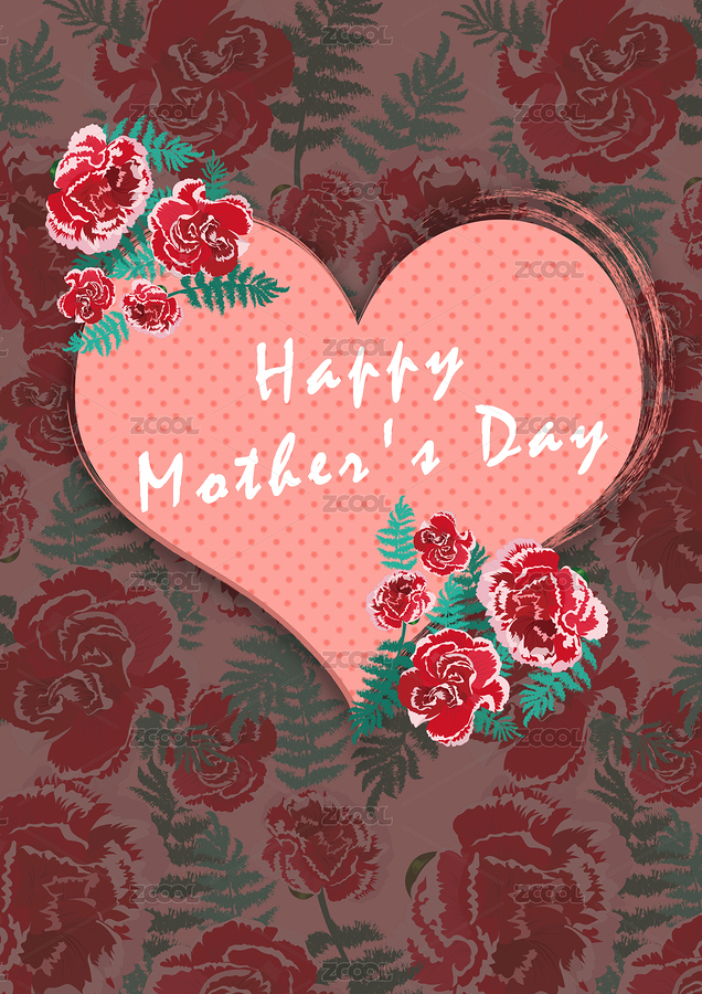 母亲节花卉心形插画