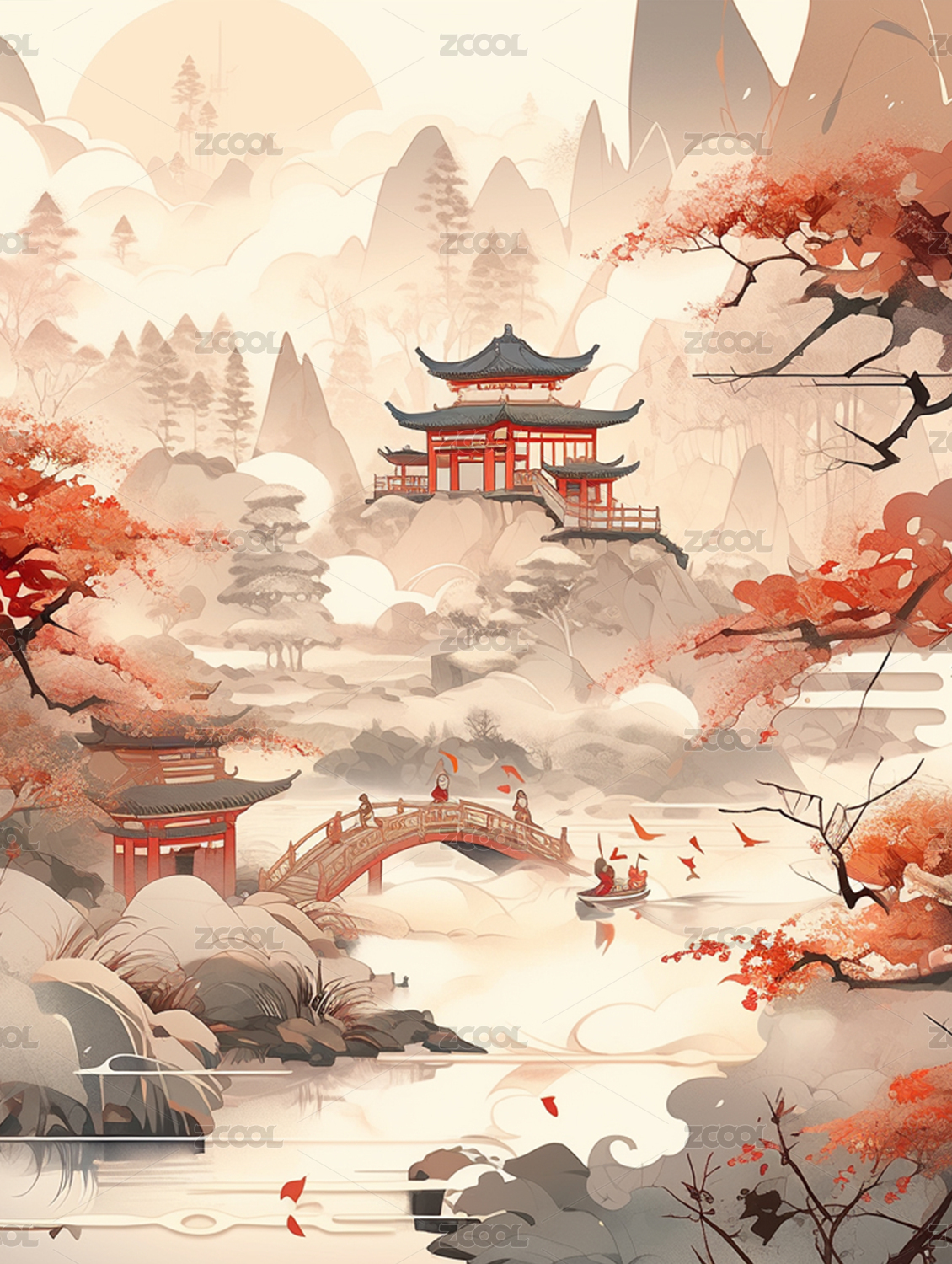 AIGCFG,国风,国潮,背景,插画,高清,山