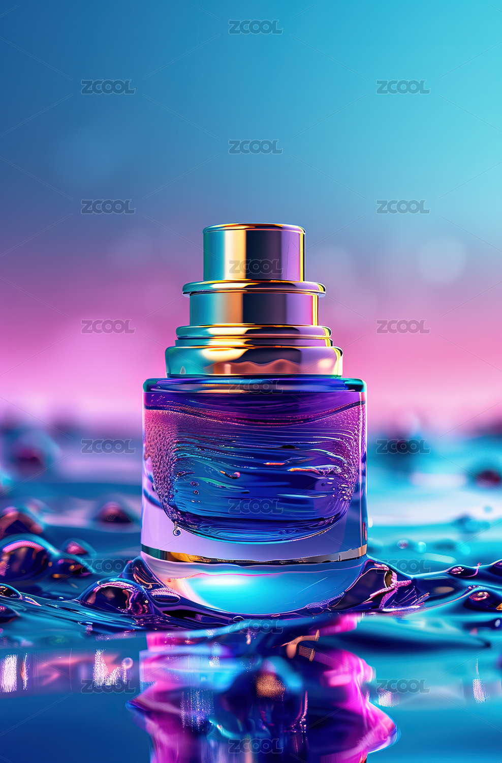 渐变玻璃金色泵头美妆护肤产品展示插画
