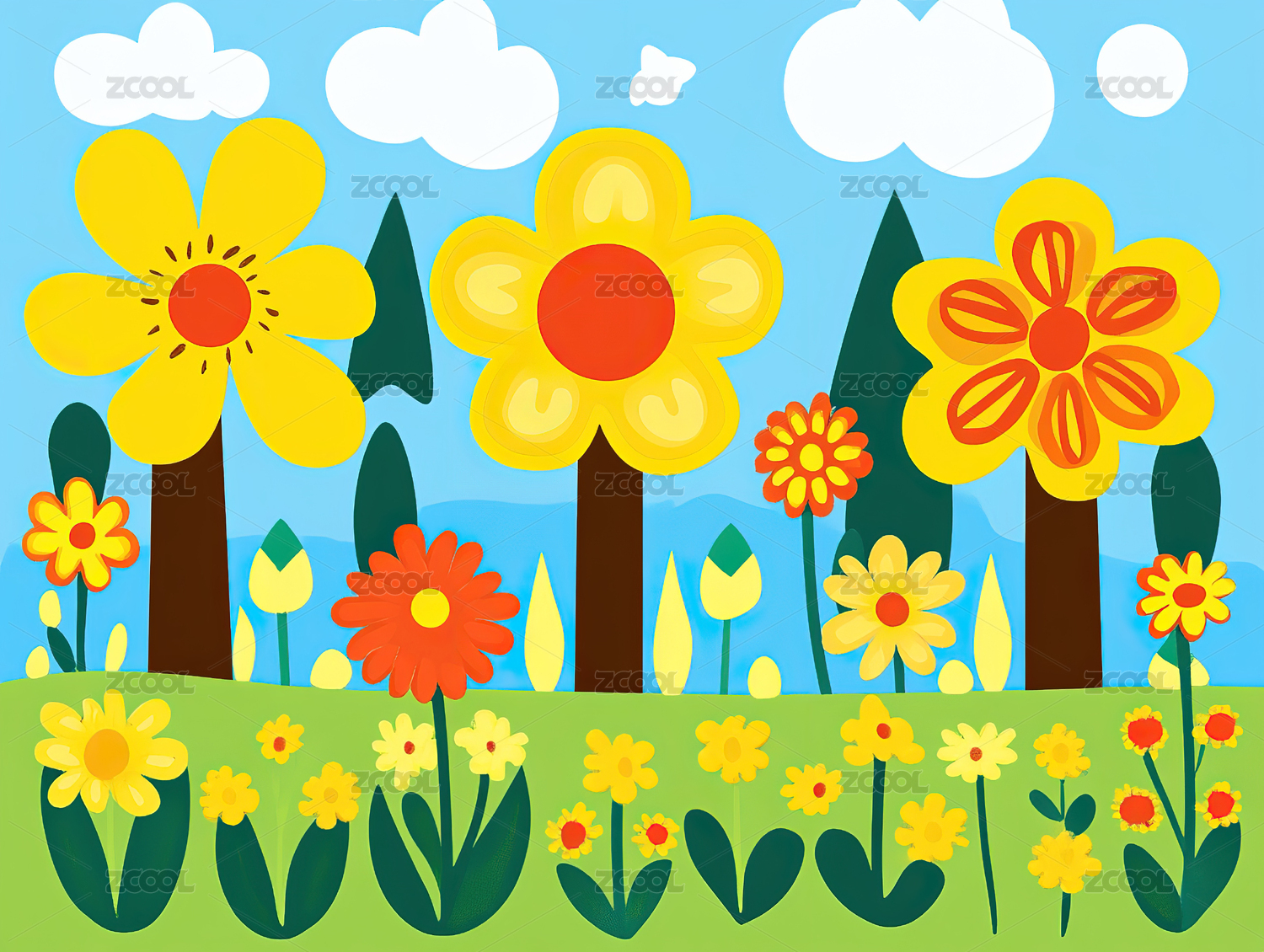 无人,花,夏天,自然,绿色,云,天空,可爱的,地形,春天