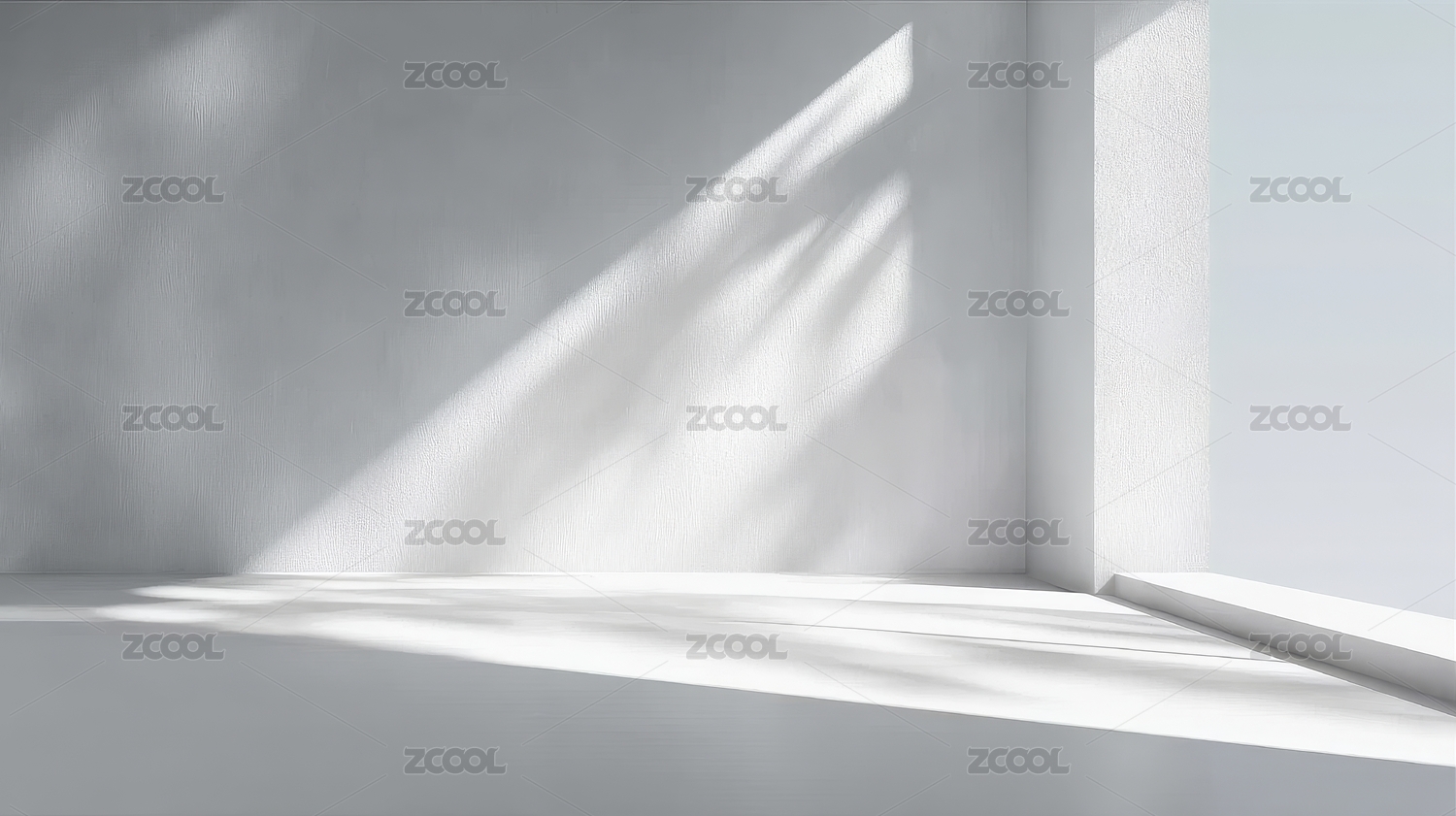 阳光透过窗户洒在白色墙面上