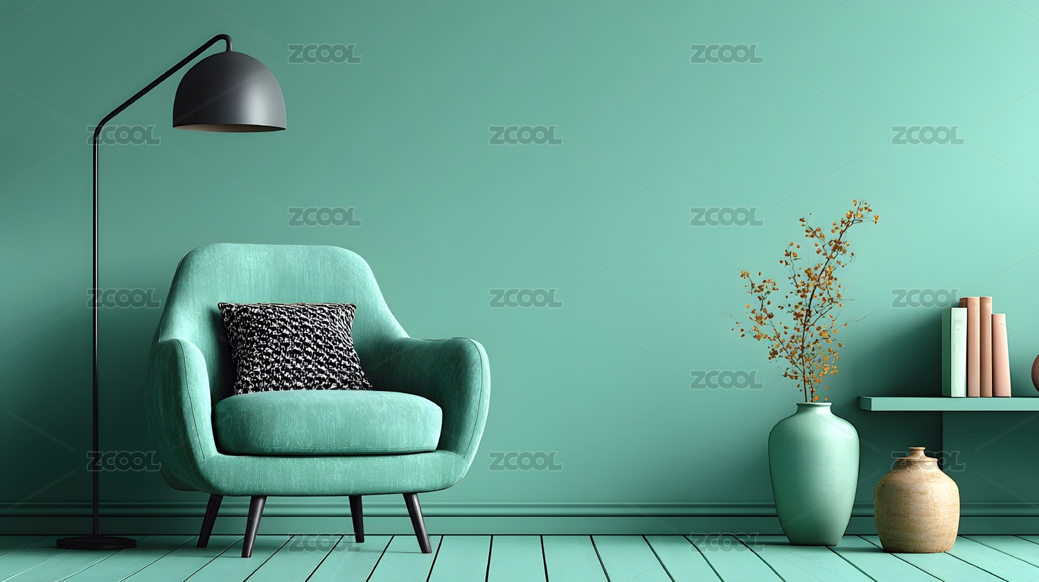 绿墙软椅配落地灯打造简约家居
