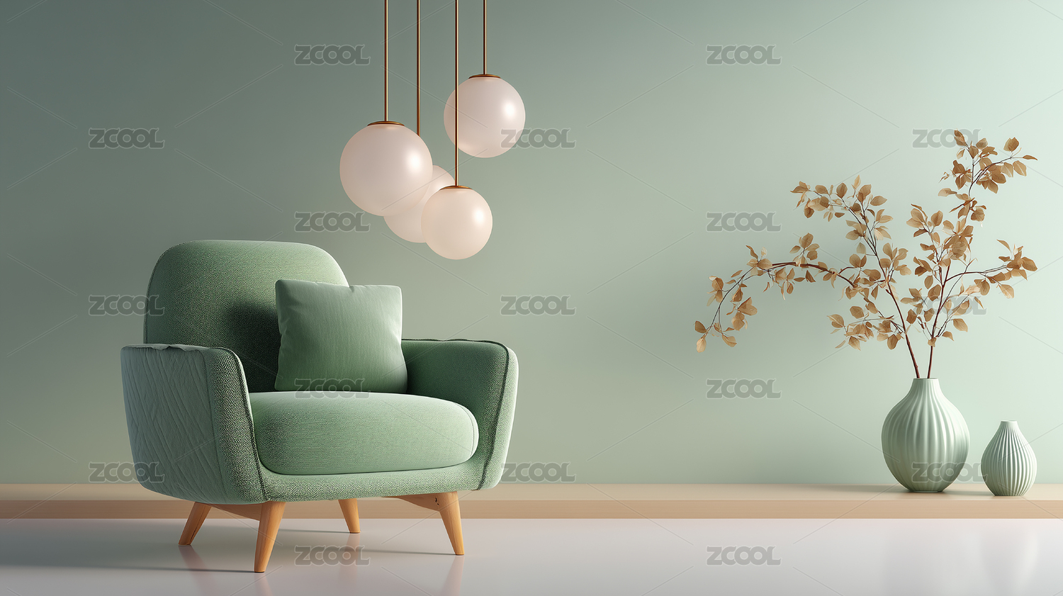 绿色扶手椅极简客厅