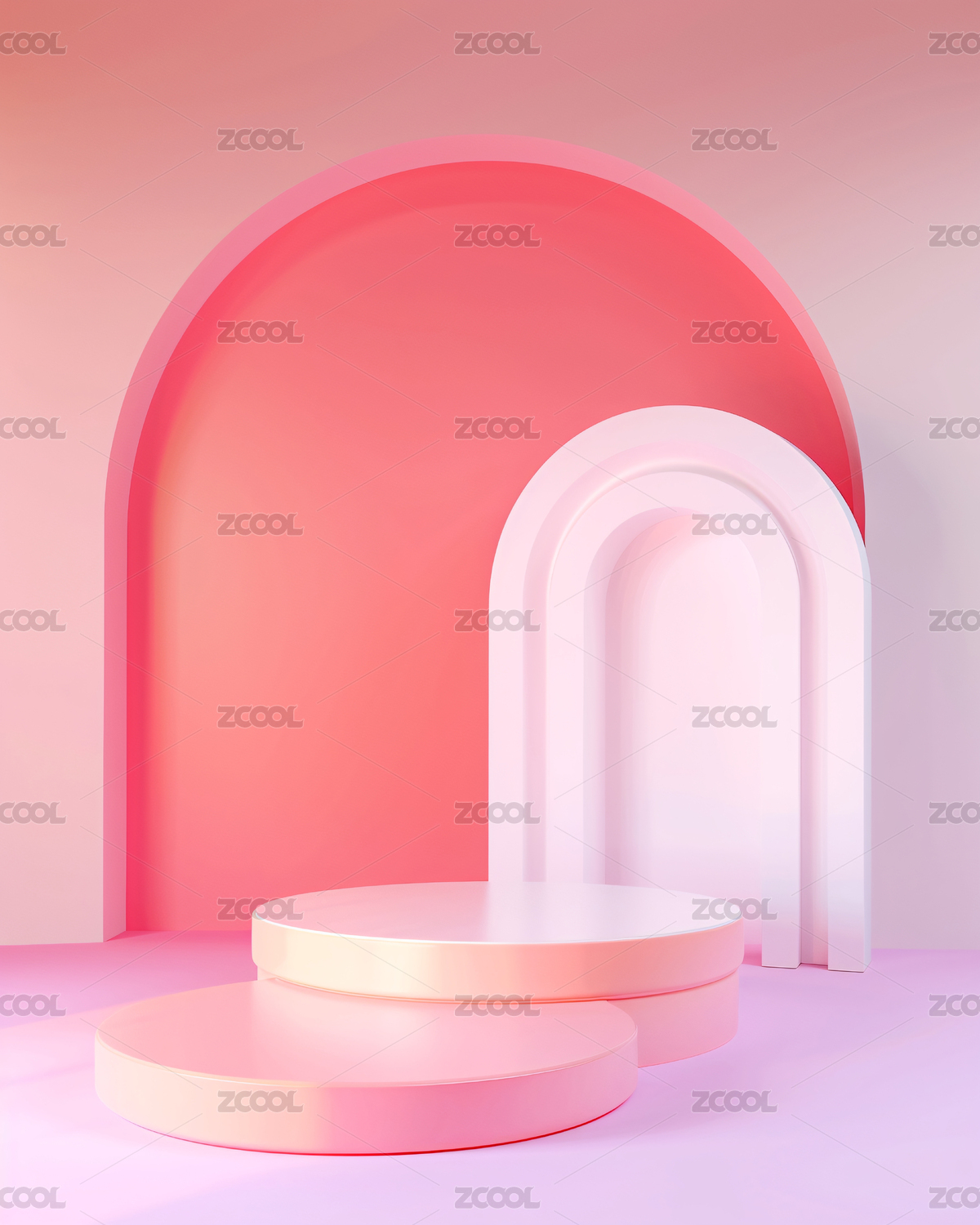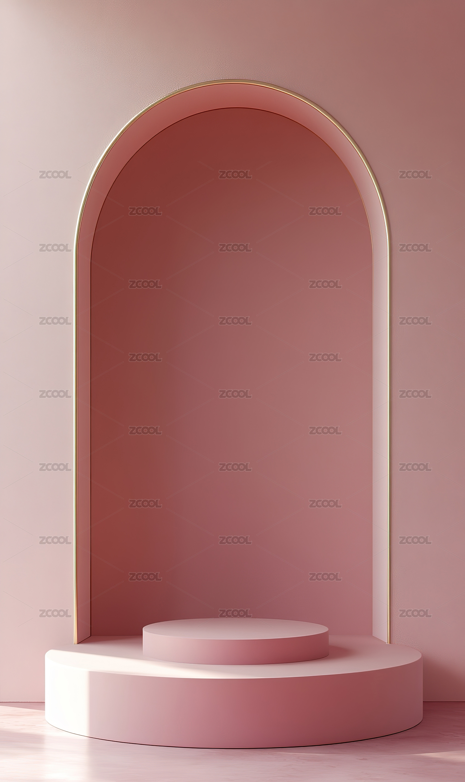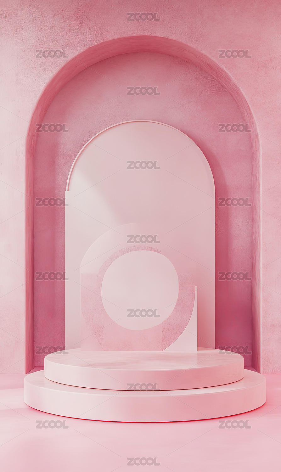 粉色拱门舞台与圆柱展示台