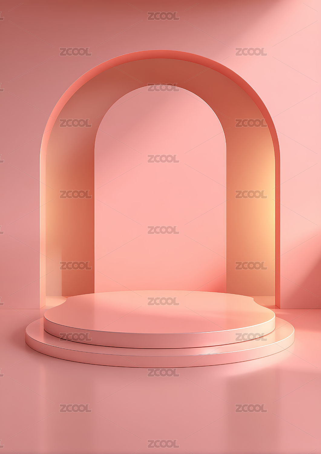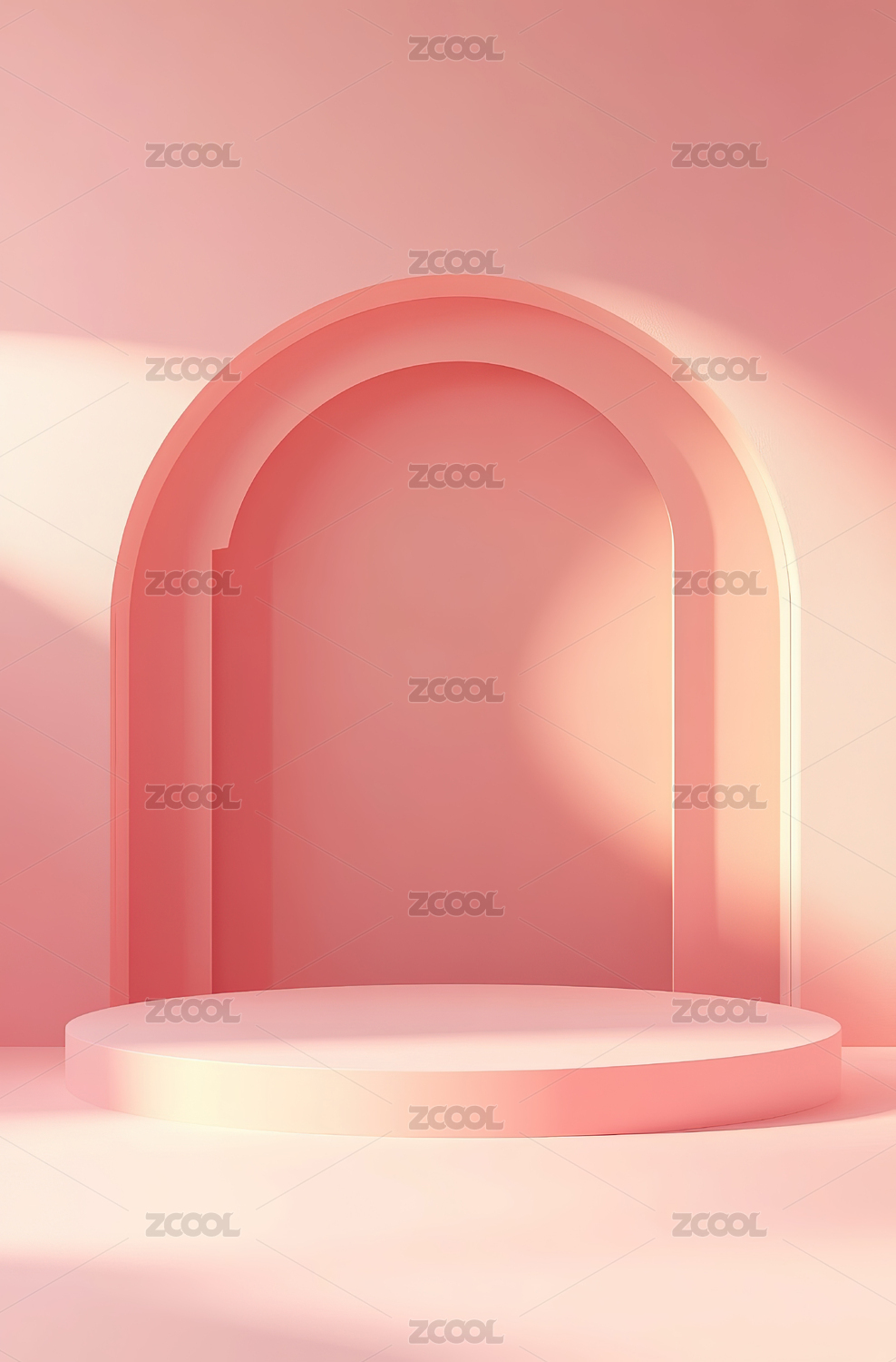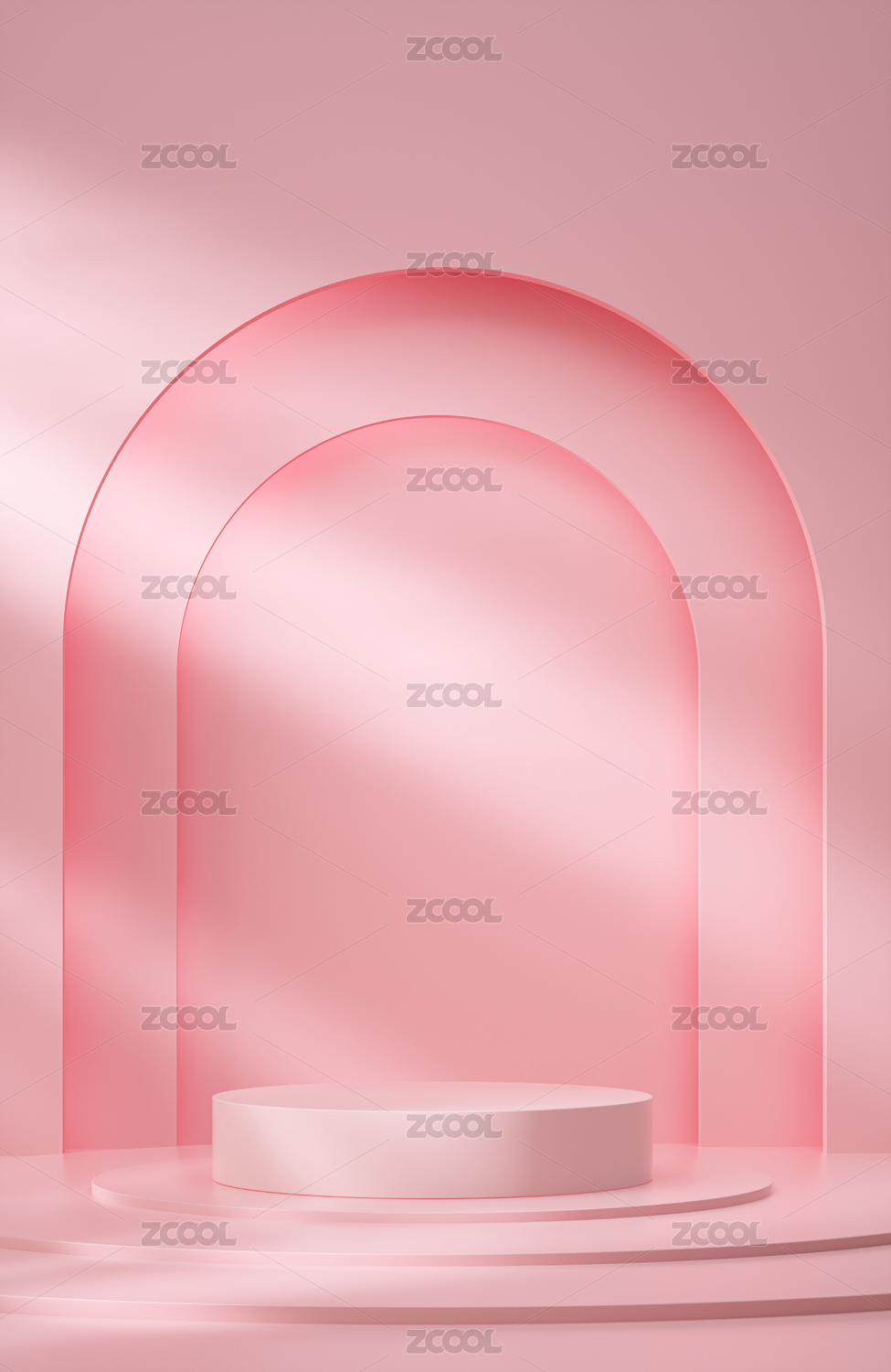 粉色拱门舞台与圆柱展示台