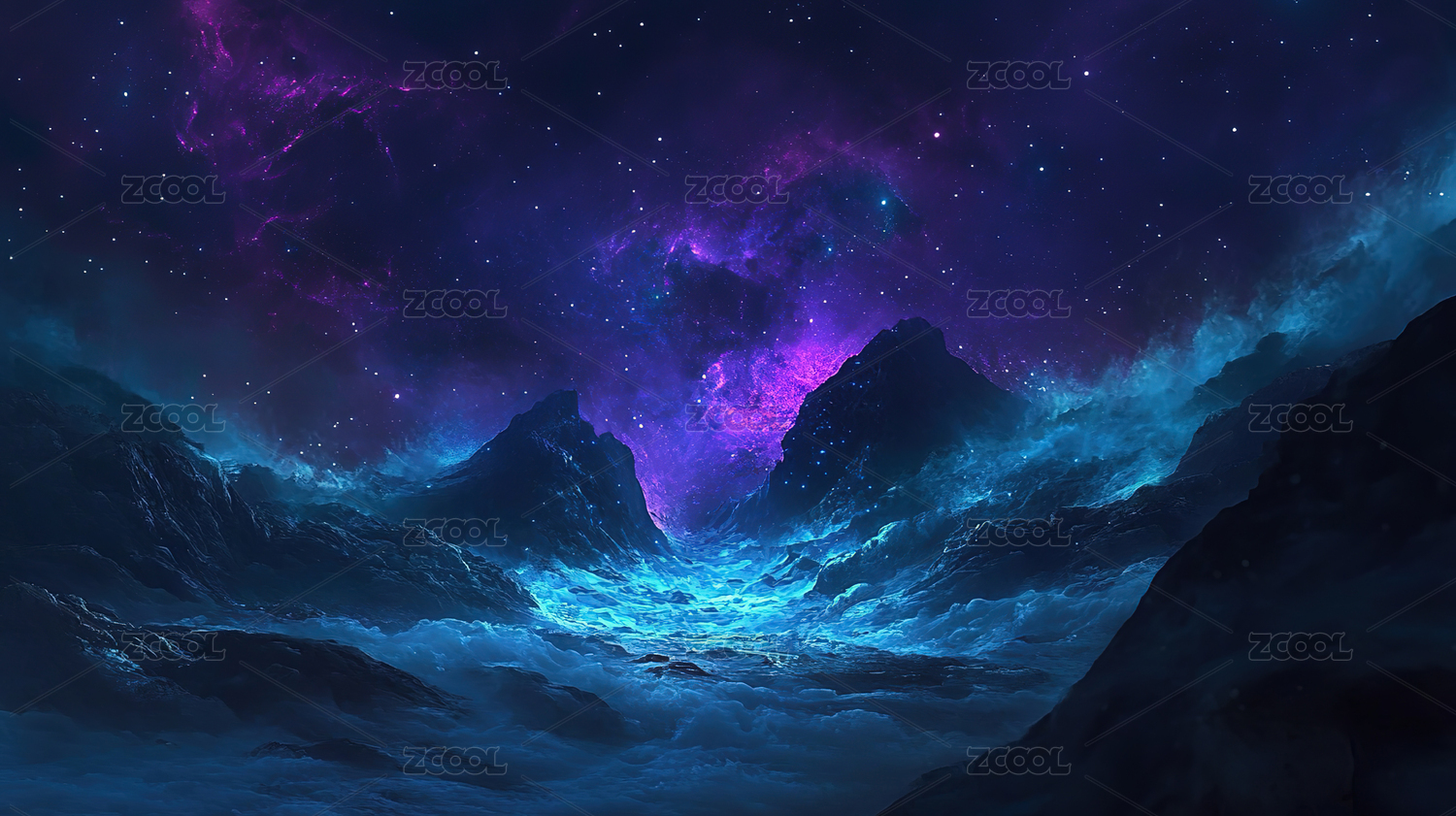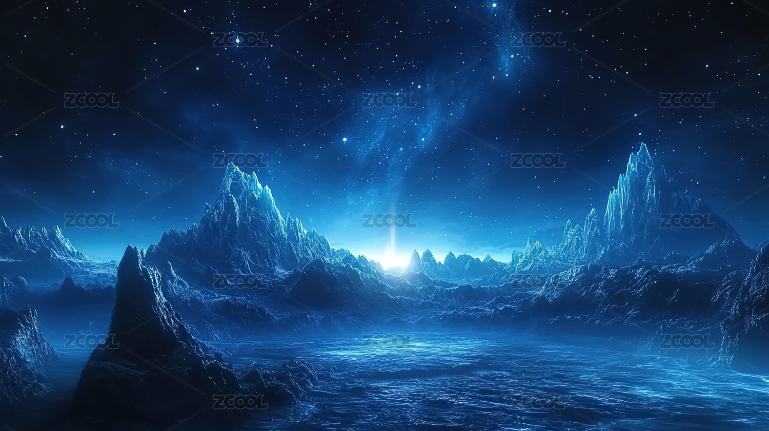 蓝色梦幻山脉星空商务背景
