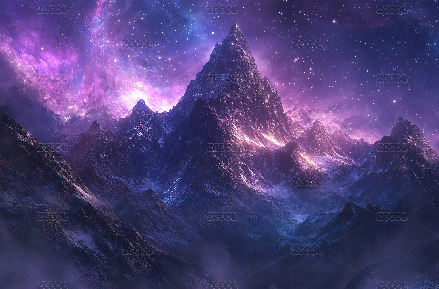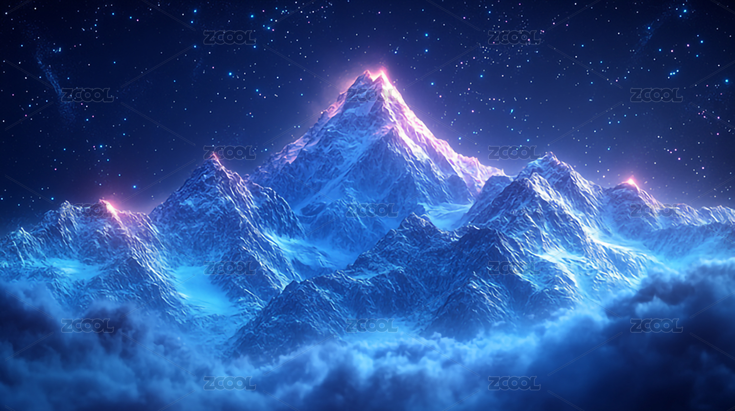 星空下的雪山和抽象图案