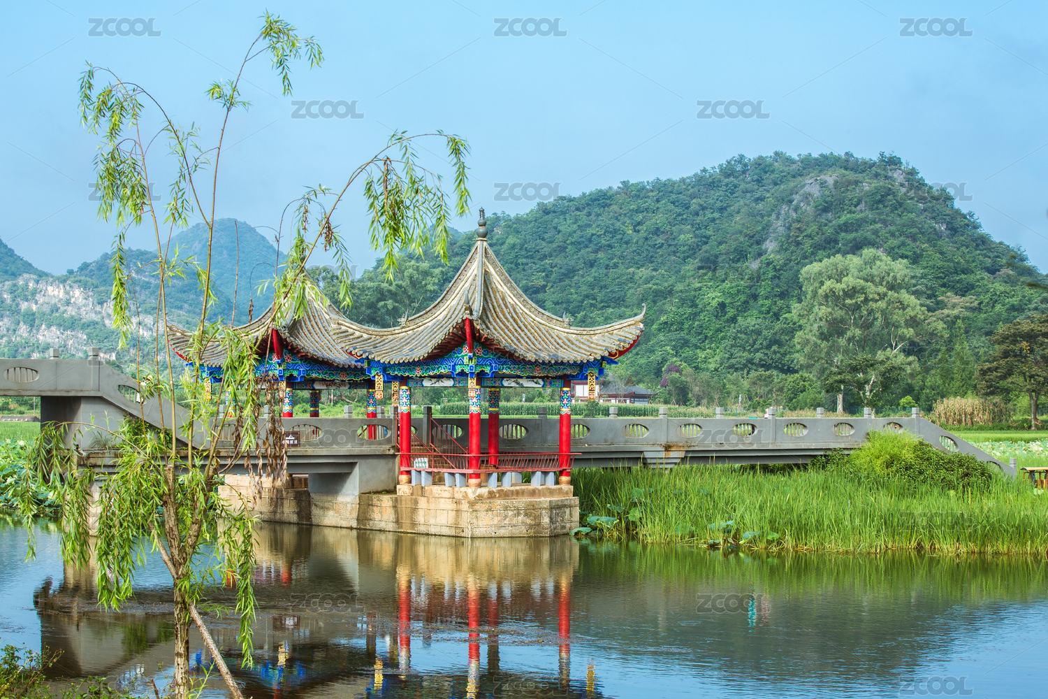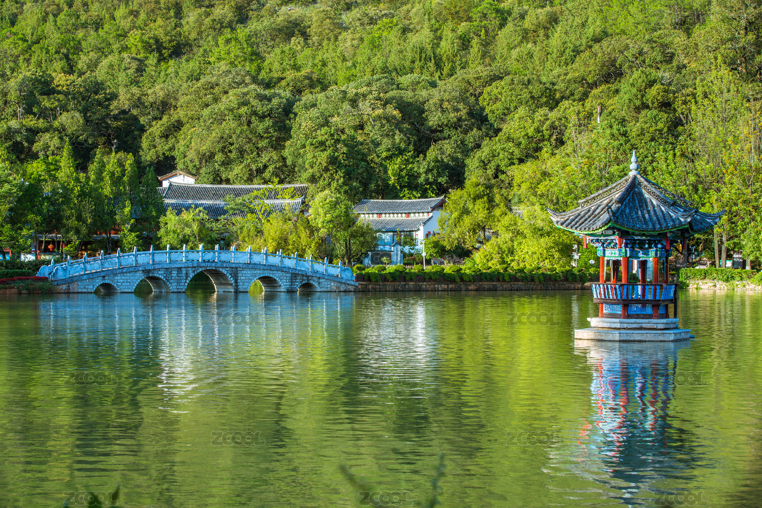 中国云南省丽江市黑龙潭公园玉带桥景观