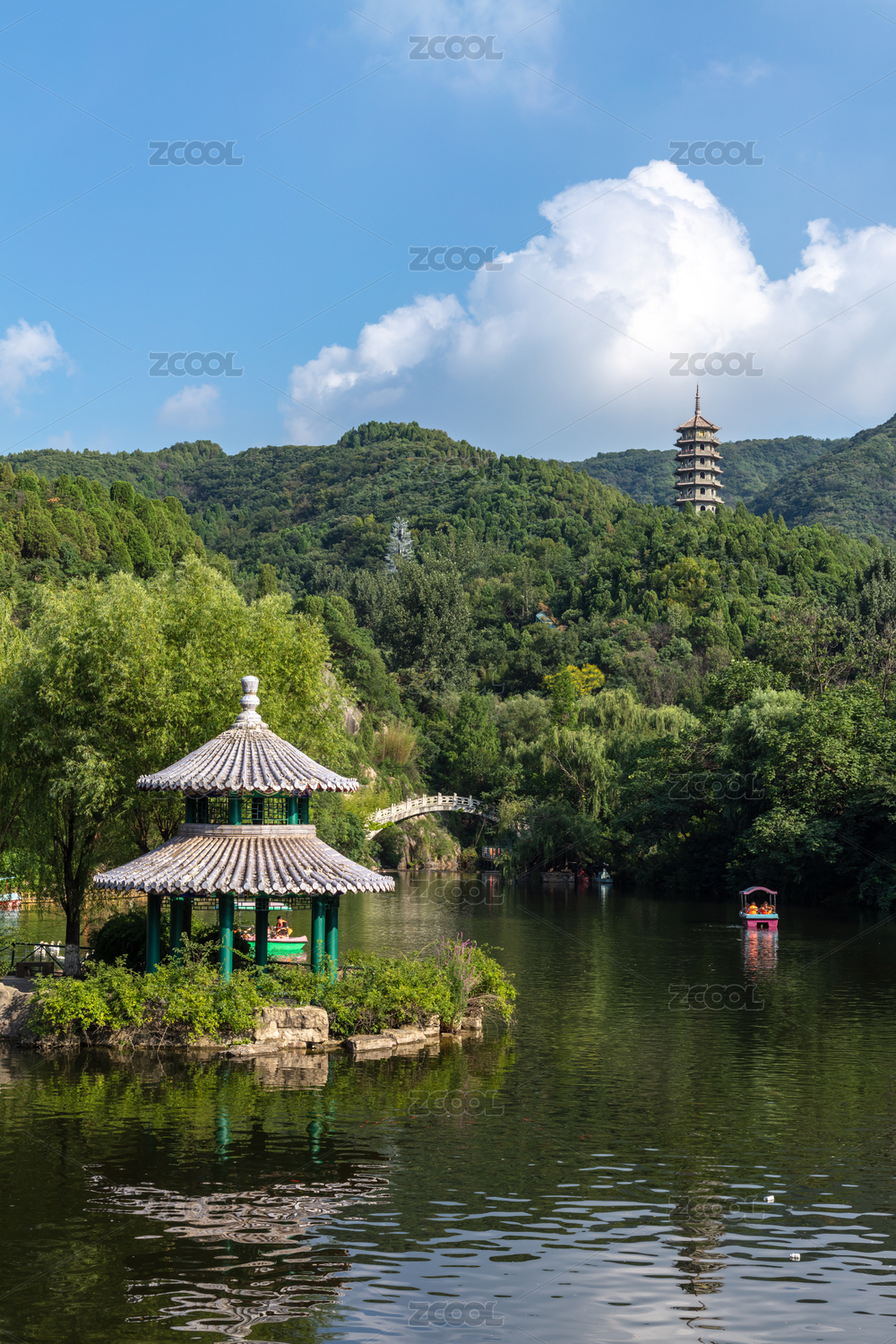 中国陕西西安华清宫九龙湖龙吟榭风景