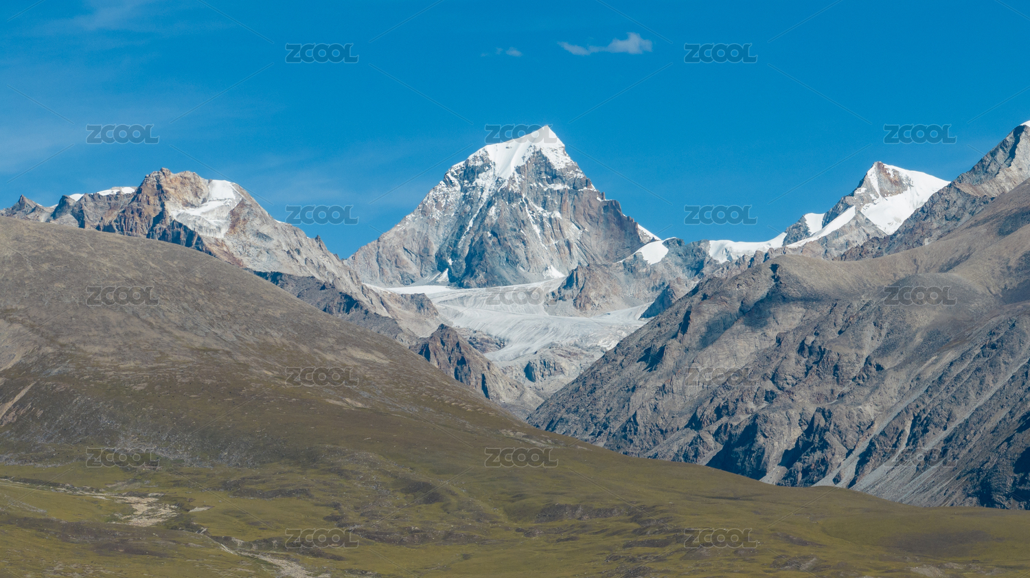 晴天中国西藏连绵不断的念青唐古拉山脉雪山