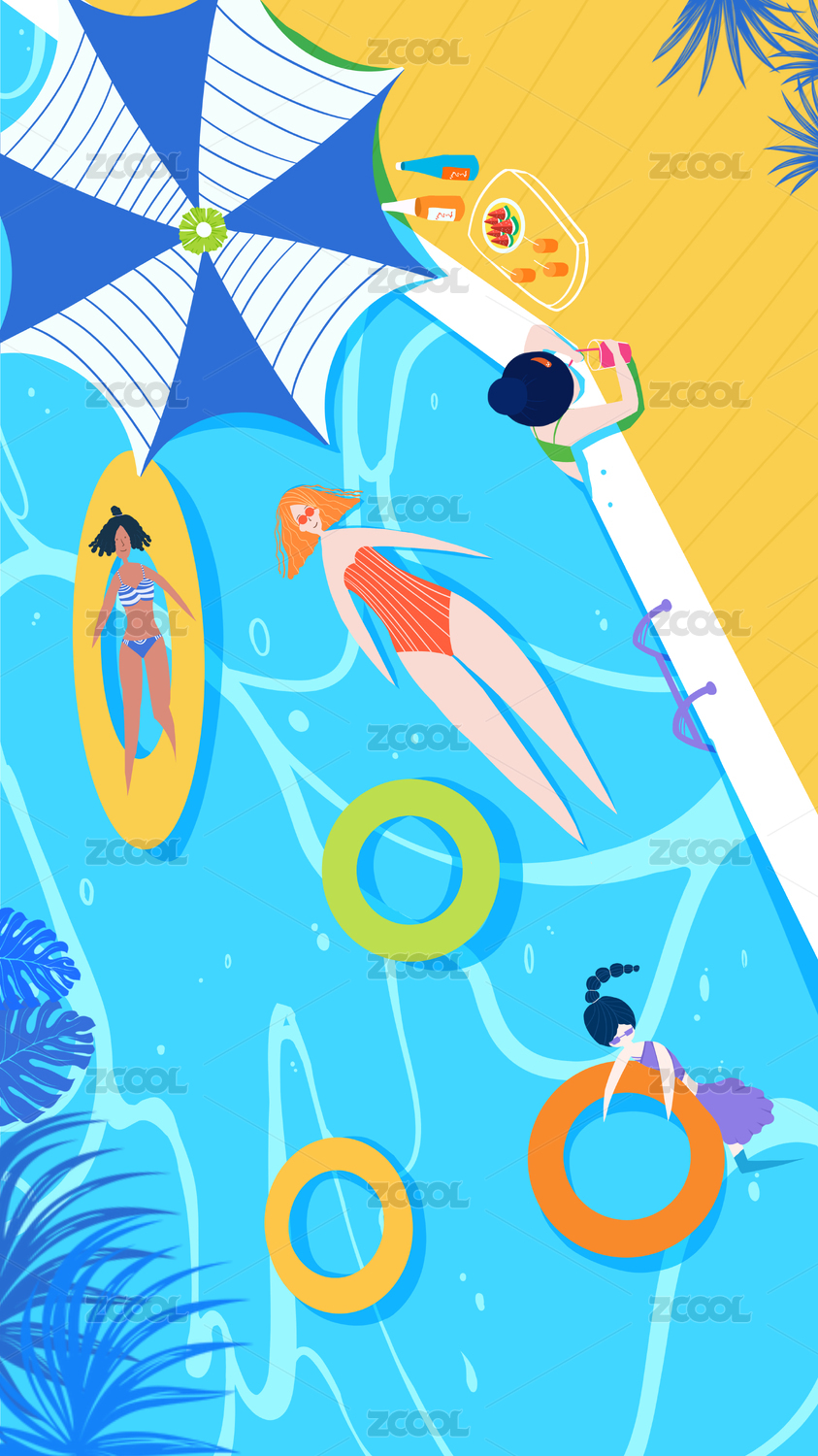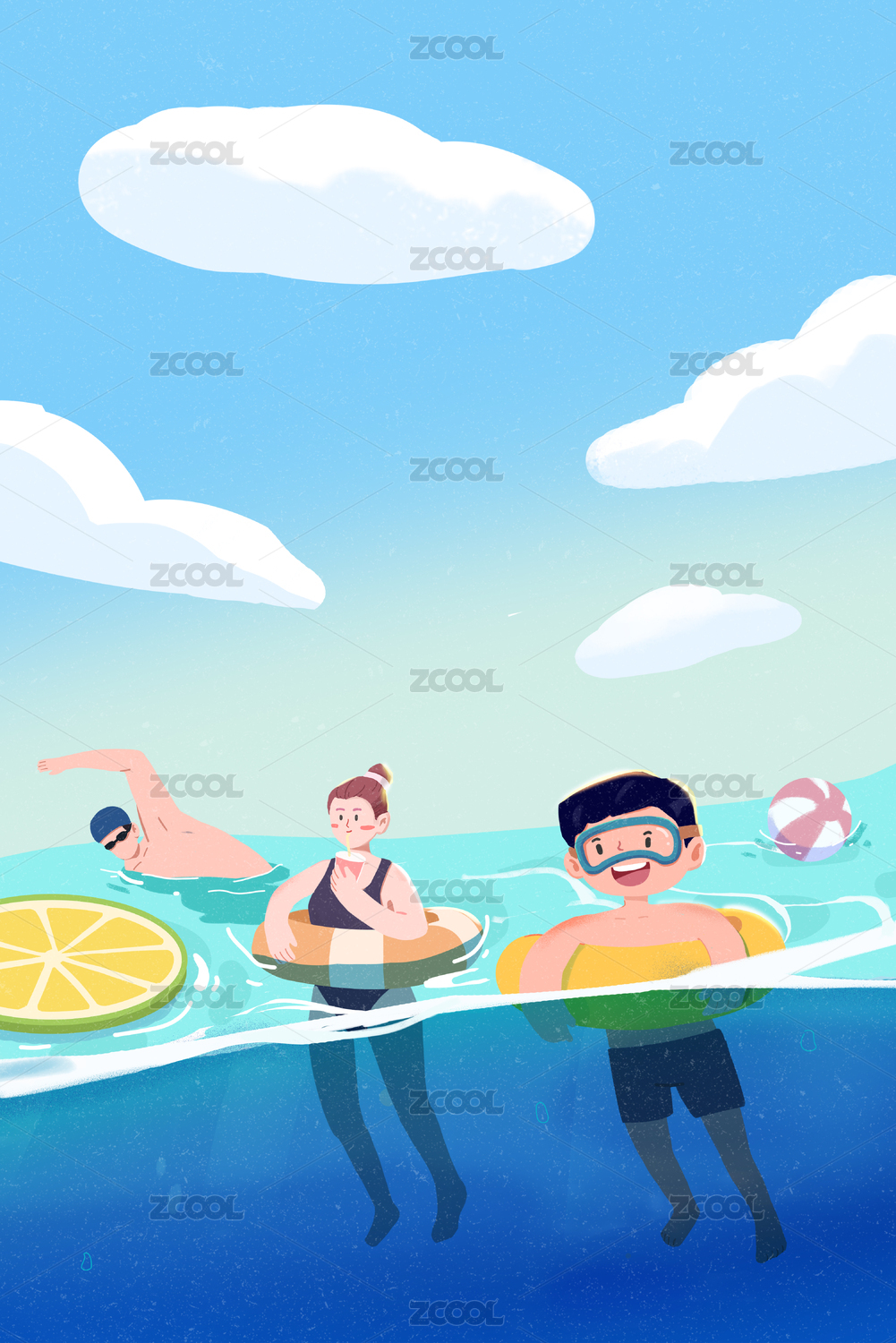 插画,节气,夏天,夏季,处暑,立夏,夏至,小暑,大暑,游泳
