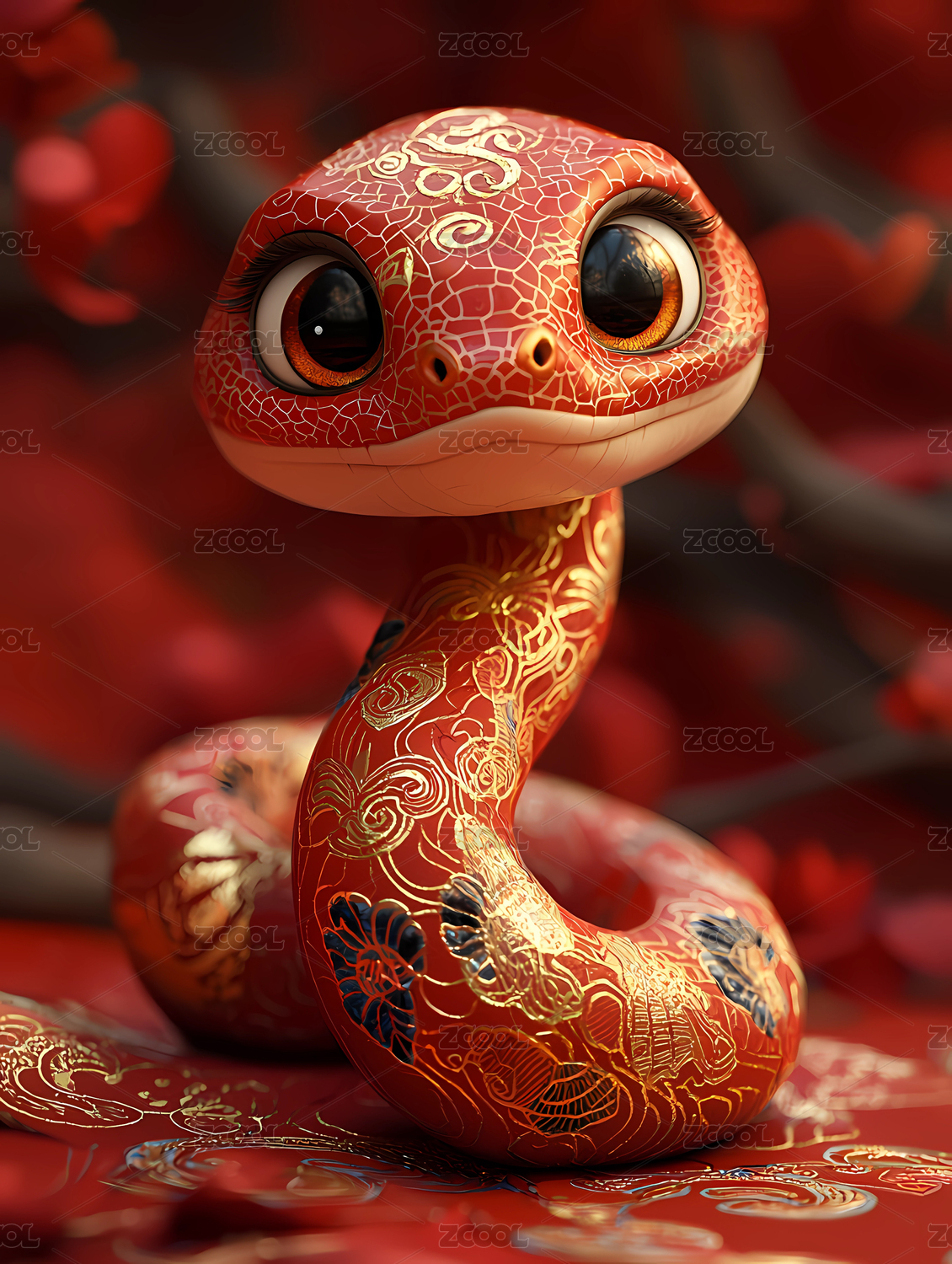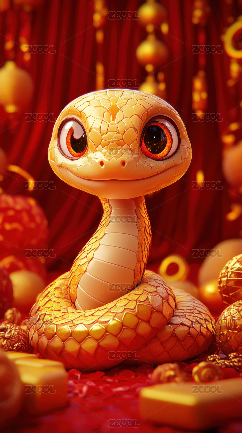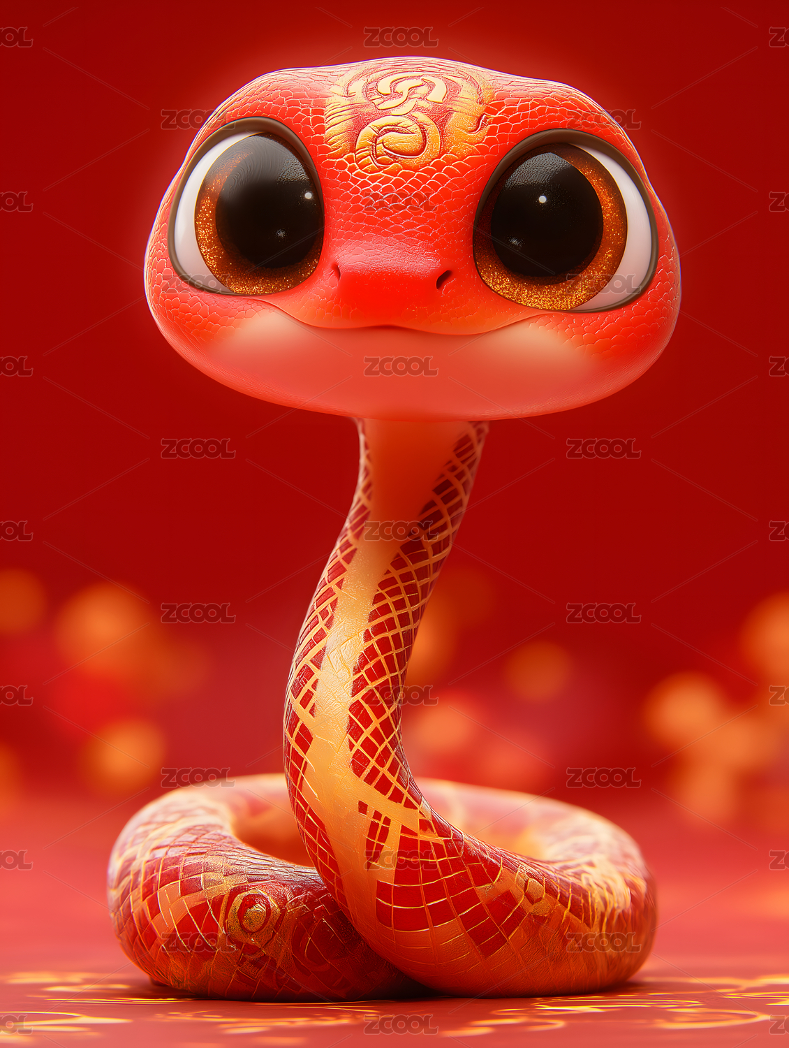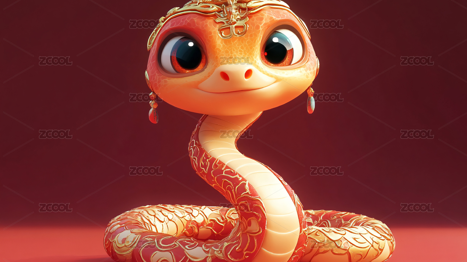 红金蛇,卡通,形象,蛇年,红色,小蛇,蛇,生肖蛇,十二生肖,蛇生肖