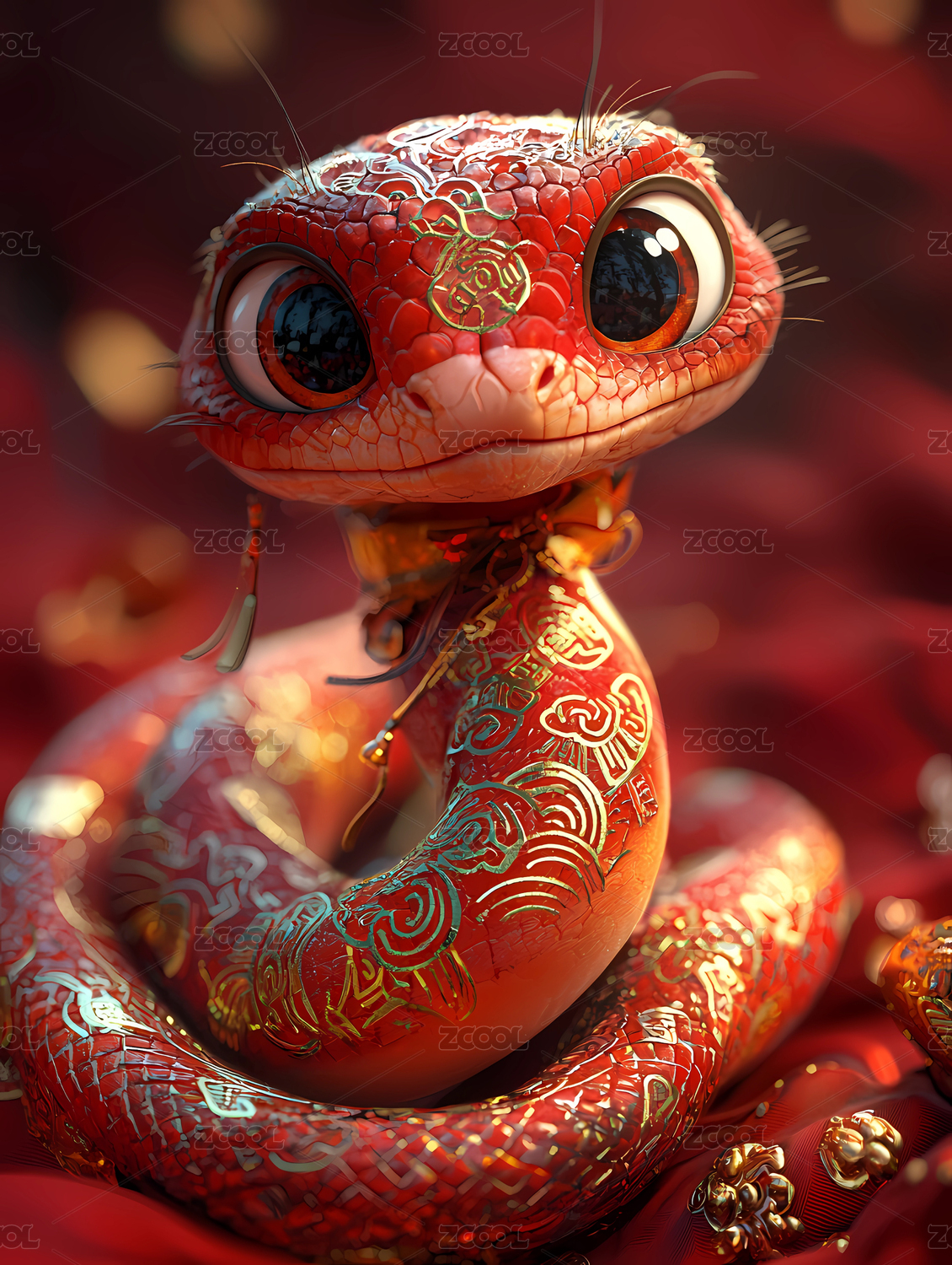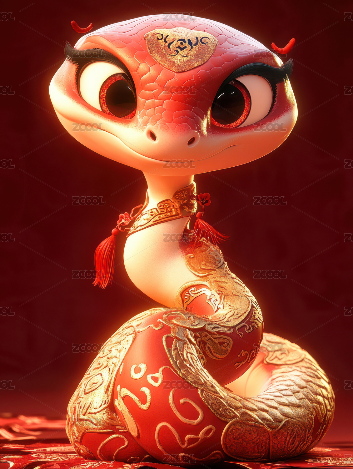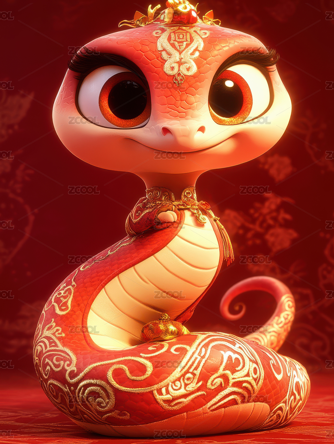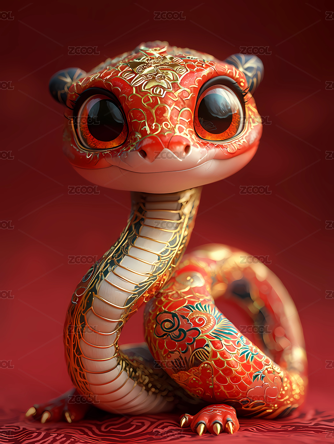 红金蛇,卡通,形象,蛇年,红色,小蛇,蛇,生肖蛇,十二生肖,蛇生肖