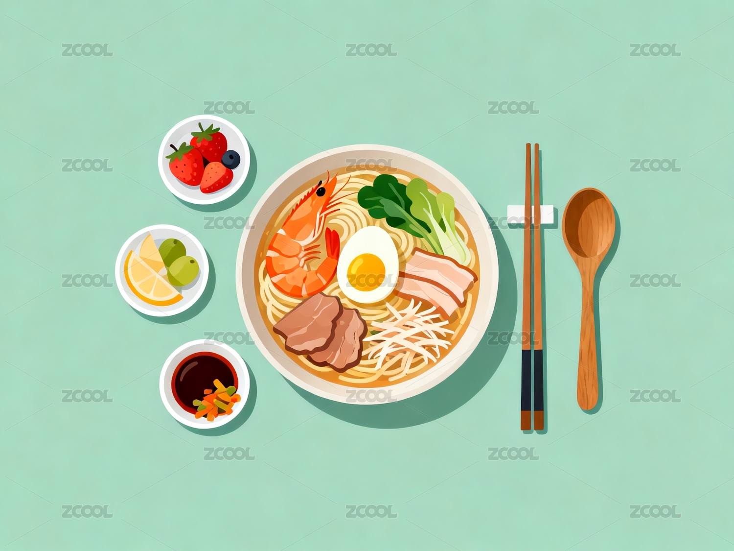火锅,鸡蛋,韩式,插画,牛肉,静物,炸酱面,煎蛋,面条,蔬菜