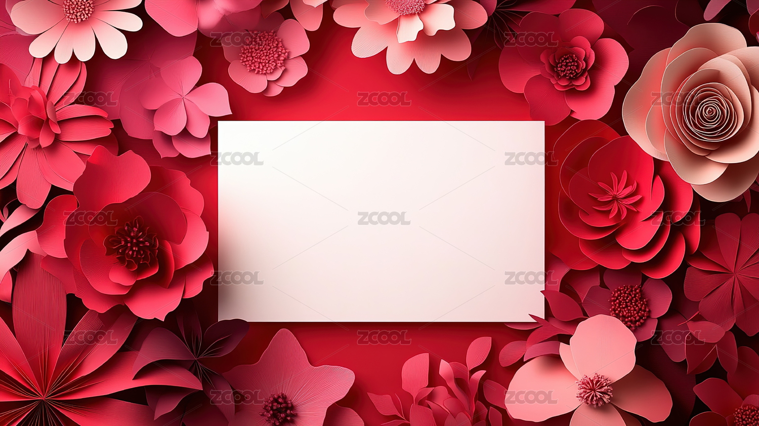 红色粉色边框鲜花花朵剪纸背景壁纸