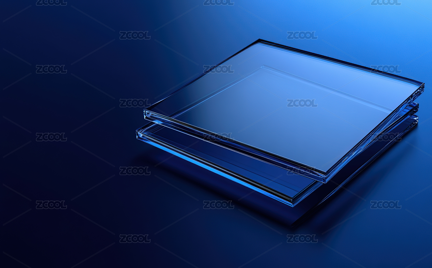 蓝色背景下的玻璃片