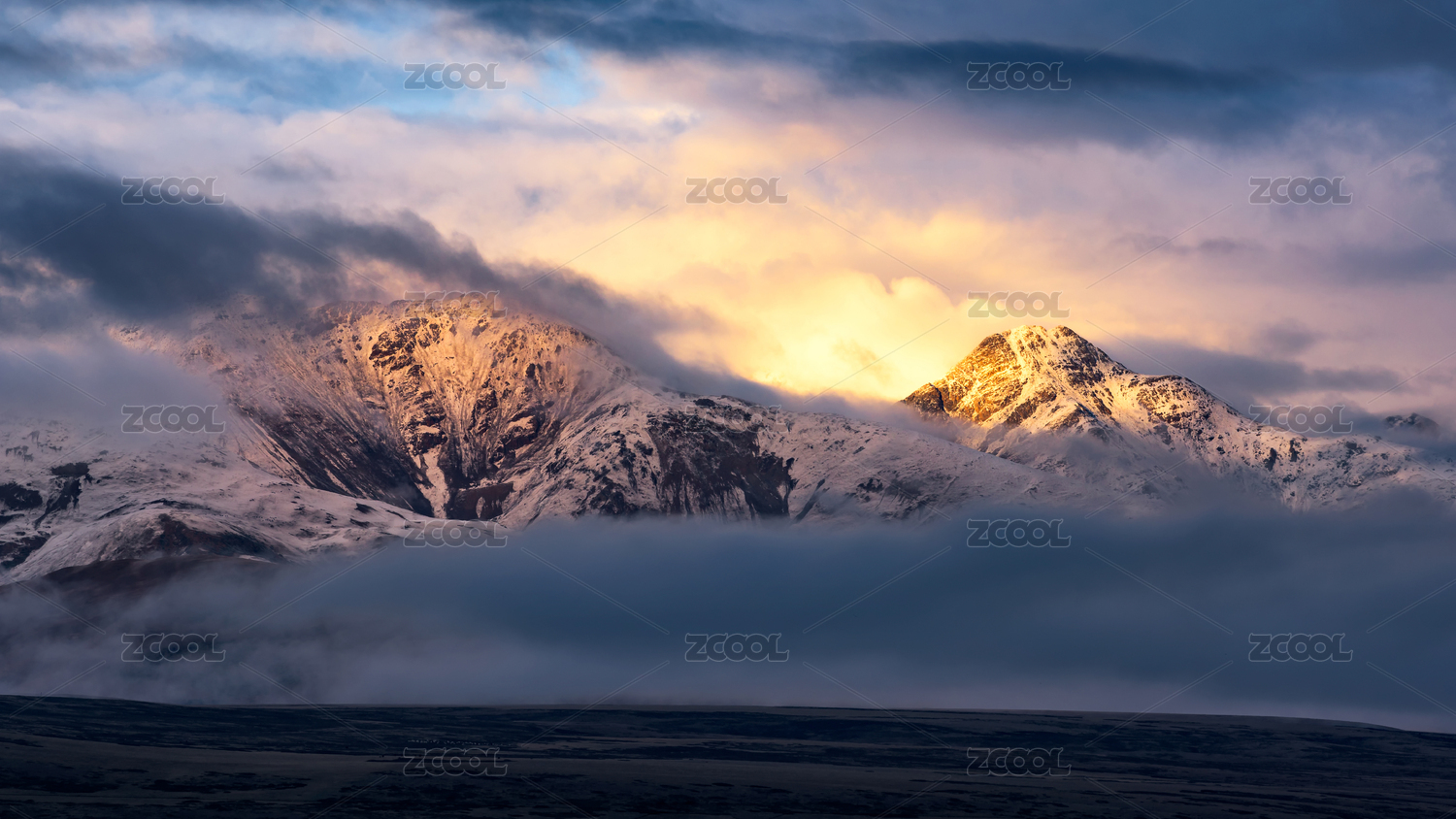 四川,川西,高原,甘孜州,雅拉雪山,日落,寺庙,日照金山,雪山,山脉