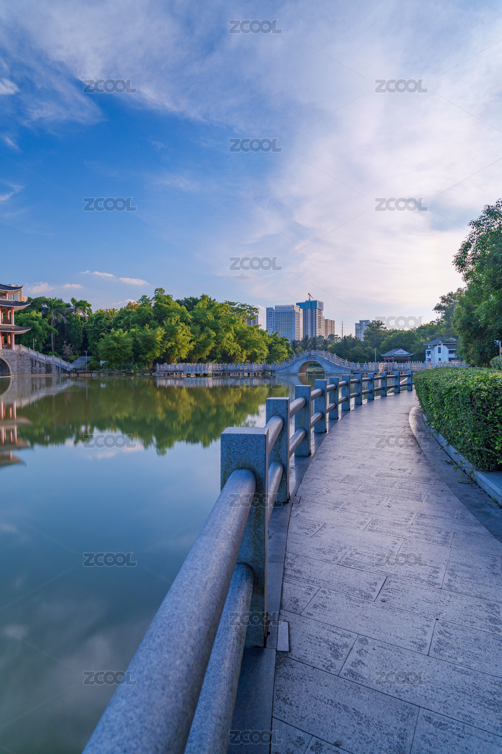 广西南宁市人民公园湖心岛九曲桥廊建筑