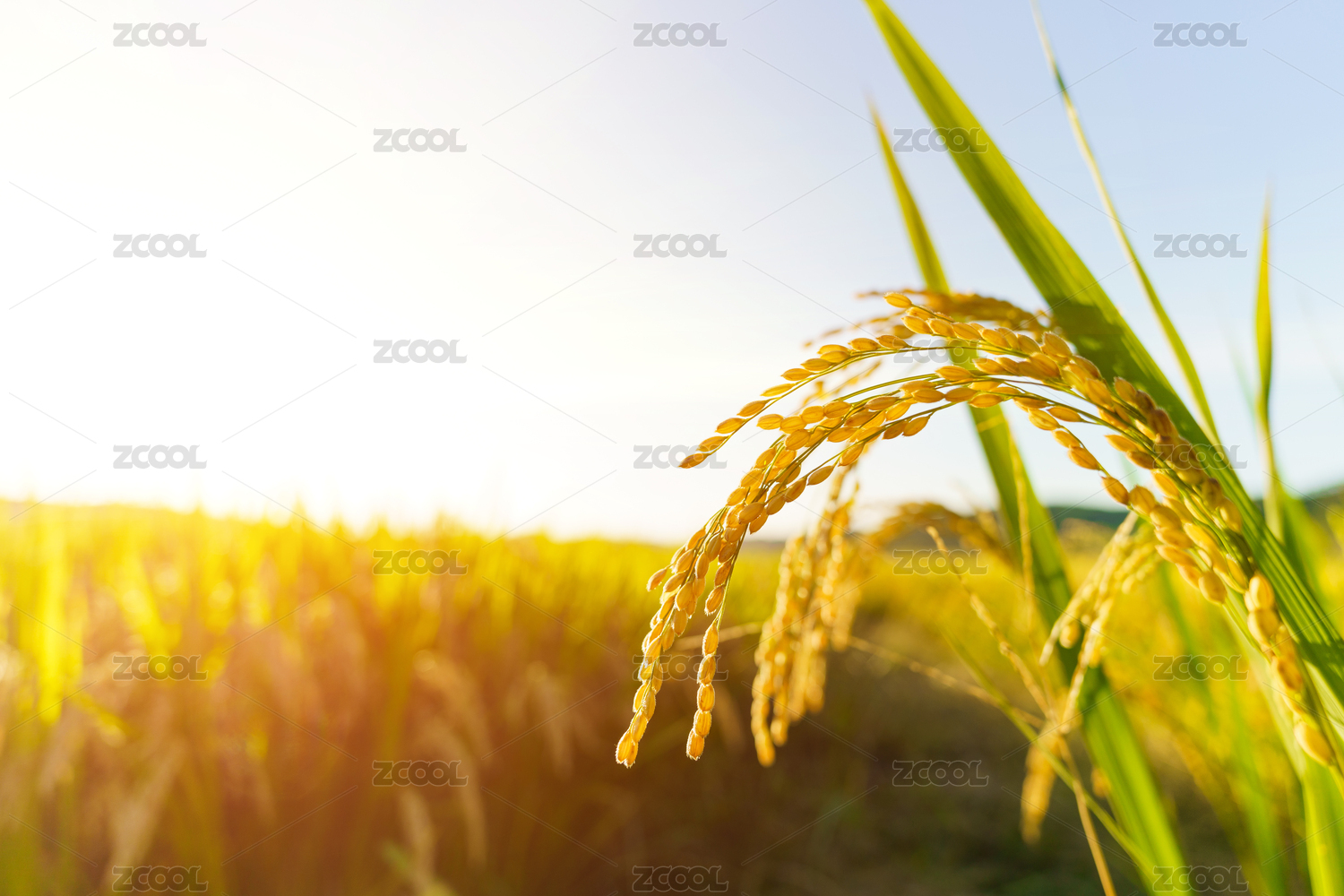 清晨农田里成熟的水稻和自然