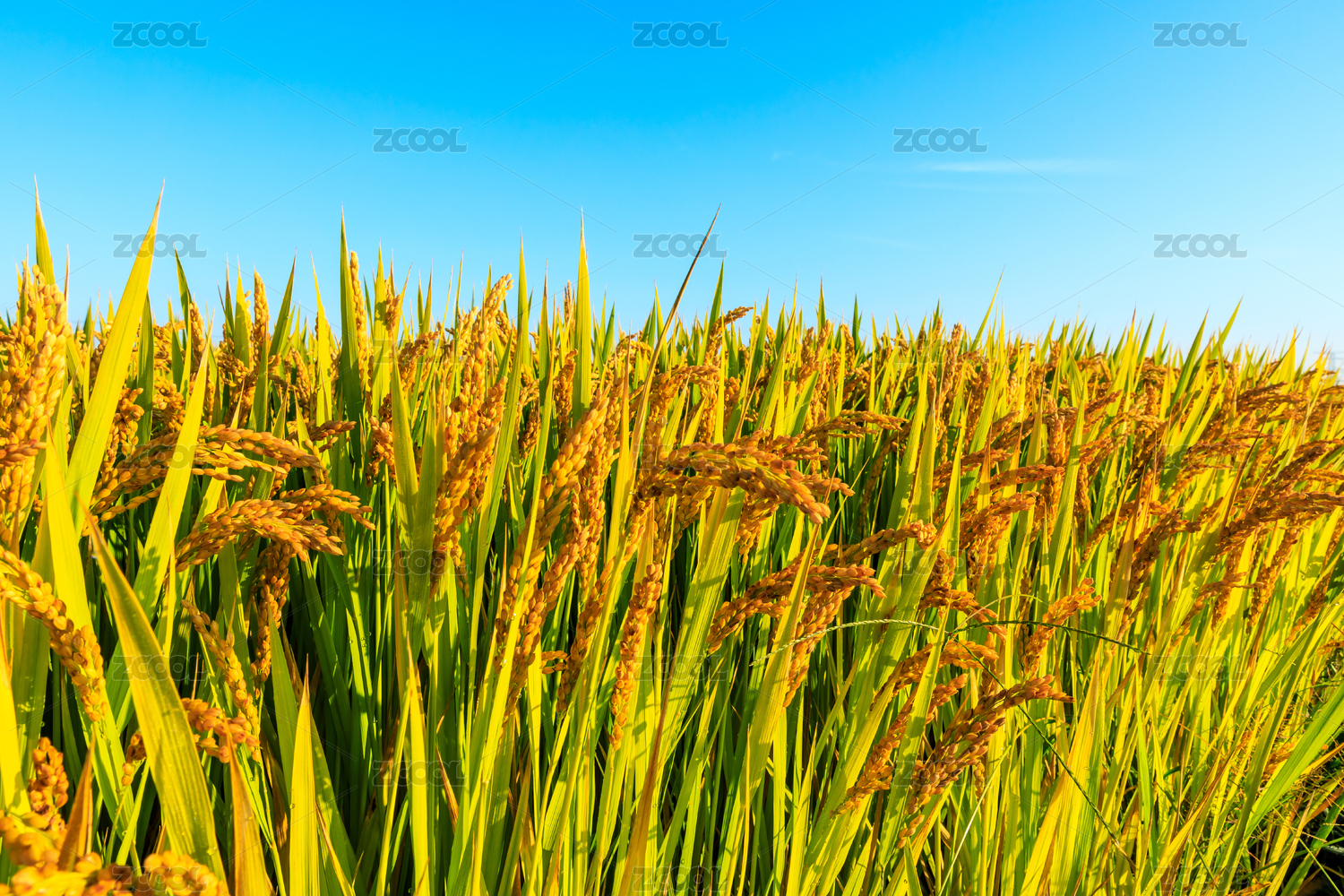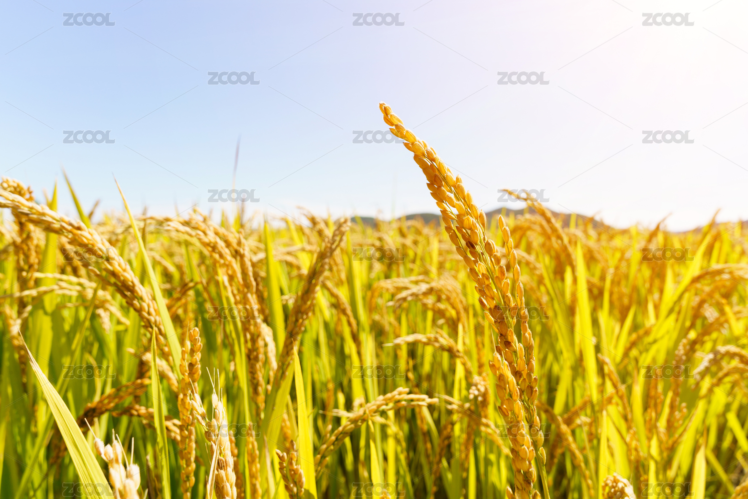 白天阳光下水稻田里的稻谷