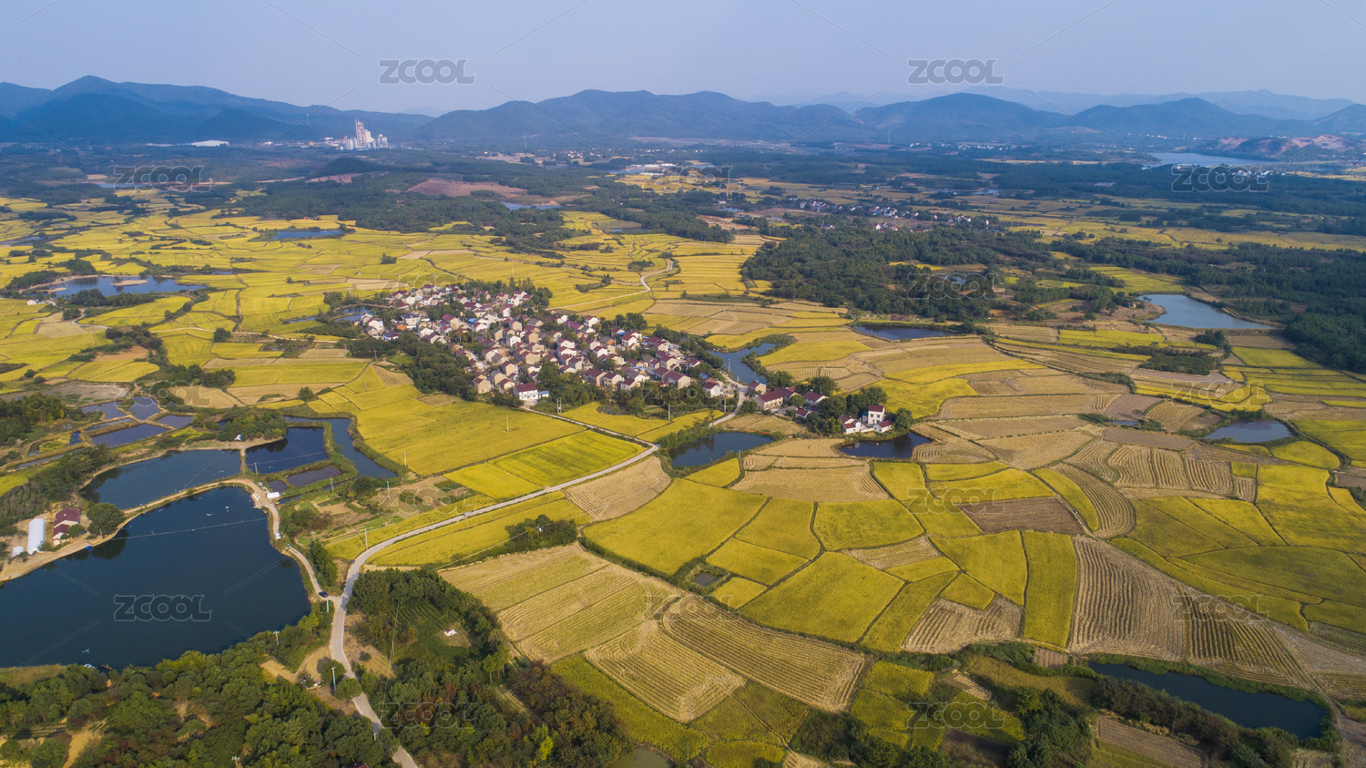 村庄,村落,绿色,金黄,黄色,无人,白昼,风光,风景,旅游