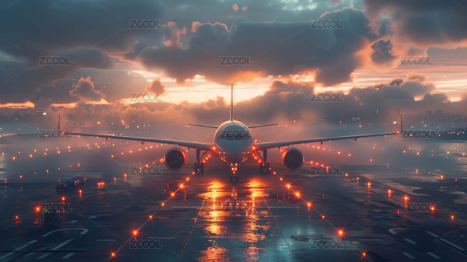机场跑道飞机起飞航空运输旅游出发商务背景