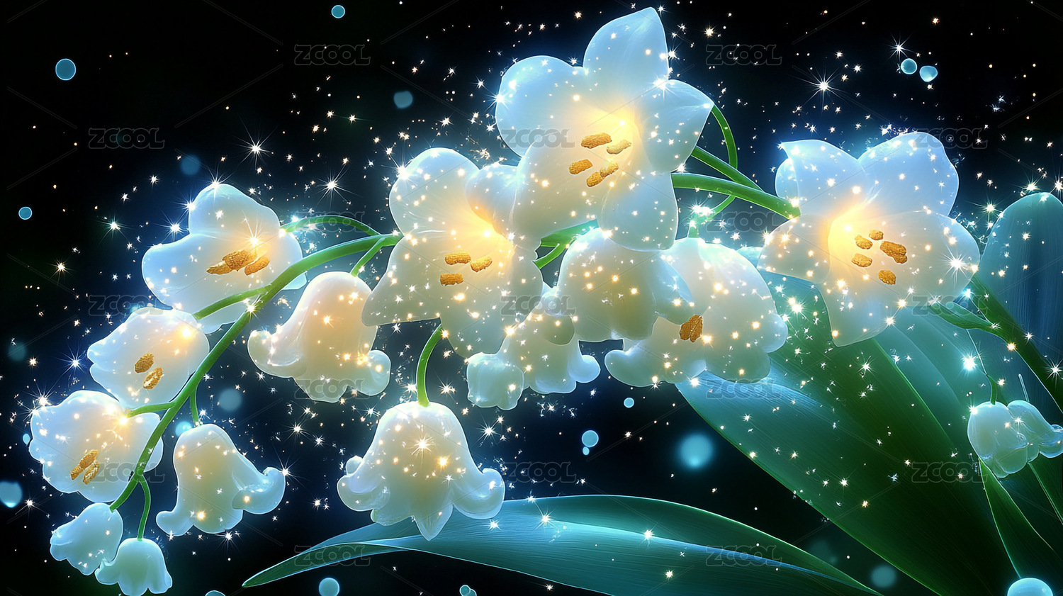 铃兰花,花卉,植物,草本,盛开,花朵,绽放,花心,花蕊,发光