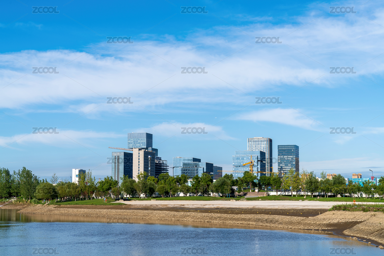 安徽合肥政务区CBD天鹅湖环湖景观风光