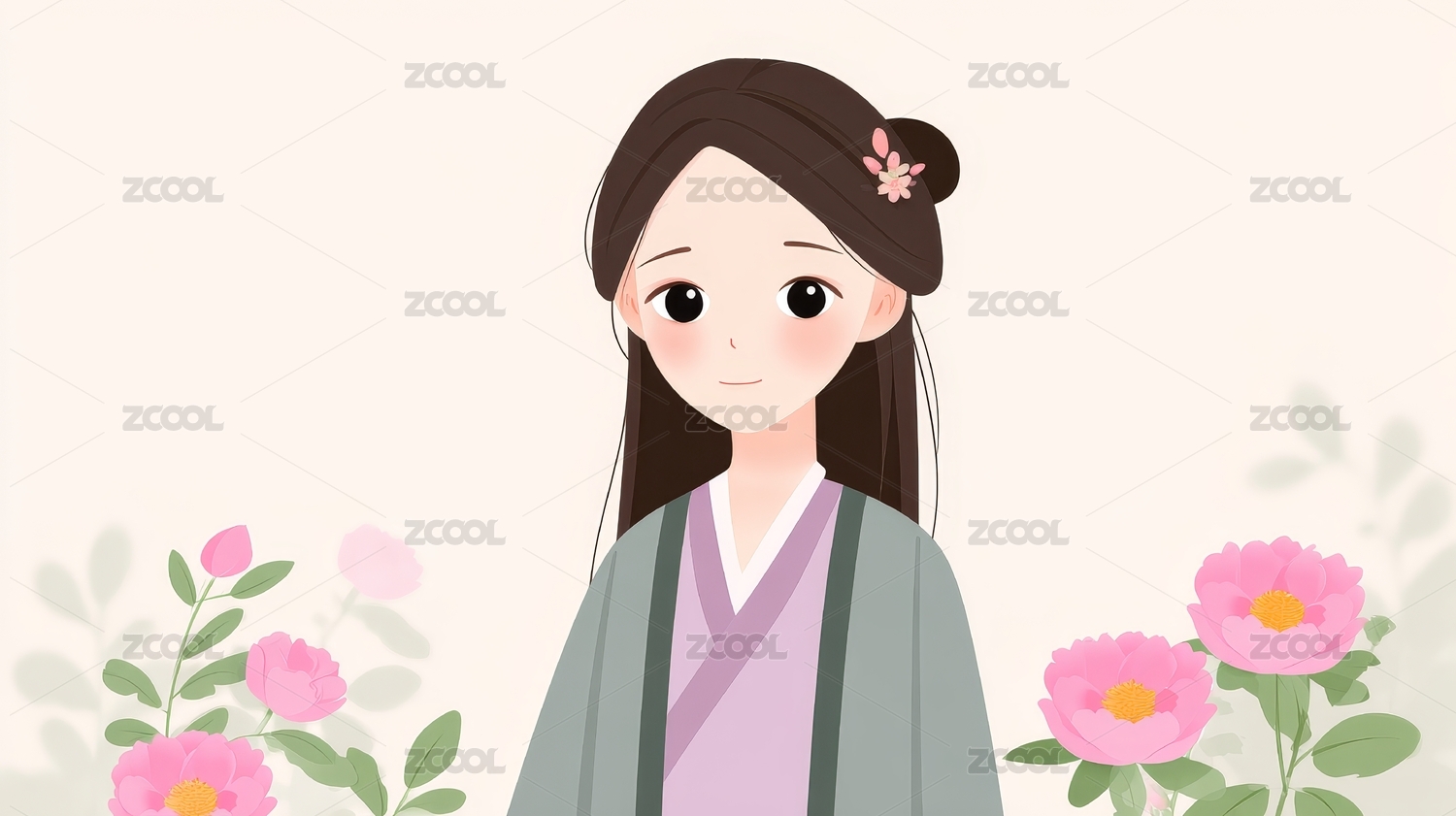 古风女孩与粉色牡丹